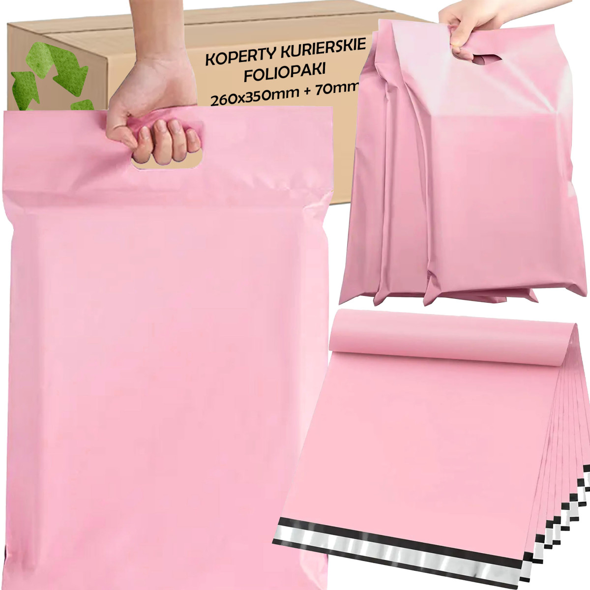 Komplekt sisaldab 50 tk roosasid kullerkotte mootudega 260 x 350 + 70 mm. Need sobivad haasti e-kaubandusele, riiete, aksessuaaride, dokumentide ja muude toodete saatmiseks.