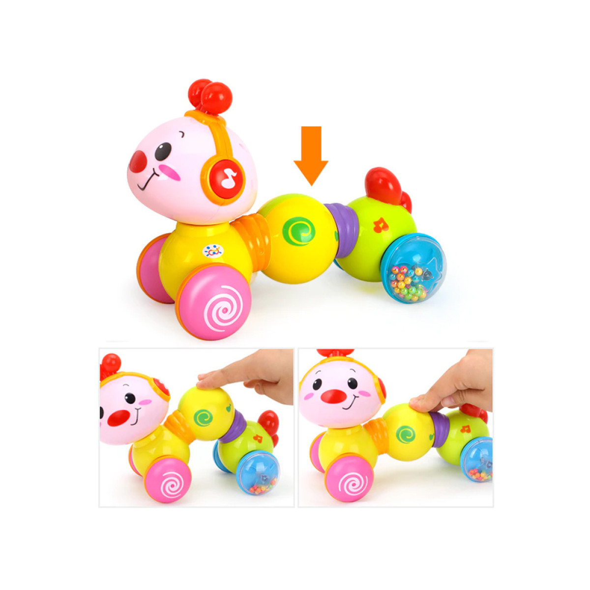 Interaktiivne armas liikuv roomik ratastel. Kaasahaarav tegevus ja lõbusad helid julgustavad last mänguasja jälgima ja julgemalt roomama.