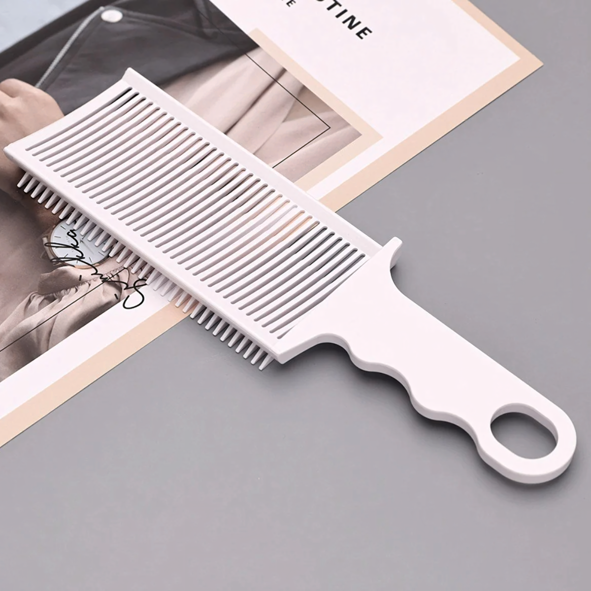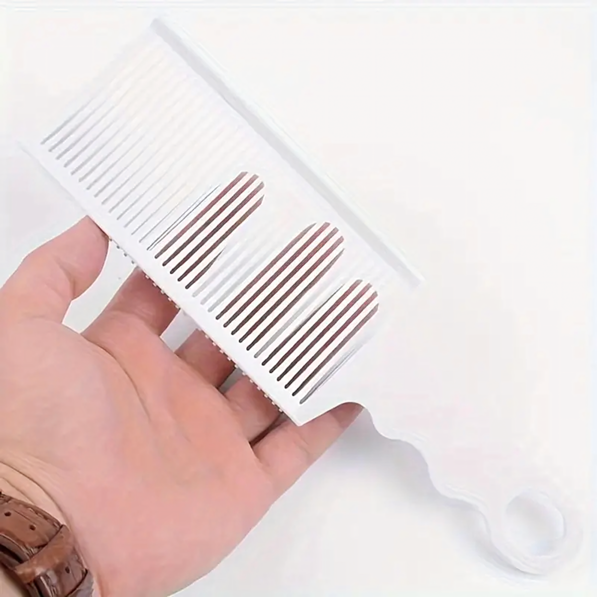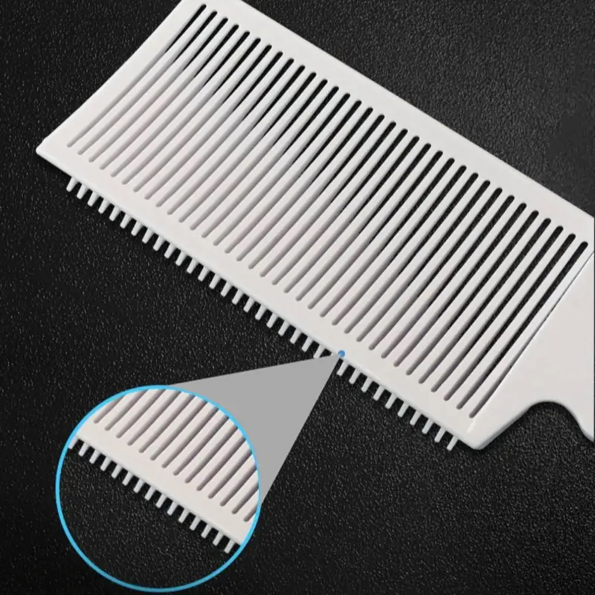 Professionaalne valge juuksurikamm ergonoomilise käepidemega lõikamiseks ja stiliseerimiseks, valmistatud kergest ja vastupidavast materjalist, kergesti puhastatav, ideaalne koduseks ja salongikasutuseks.