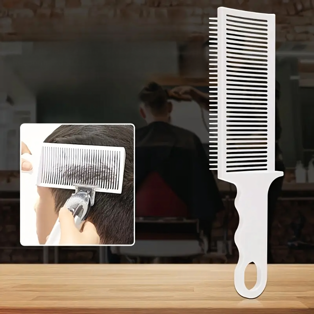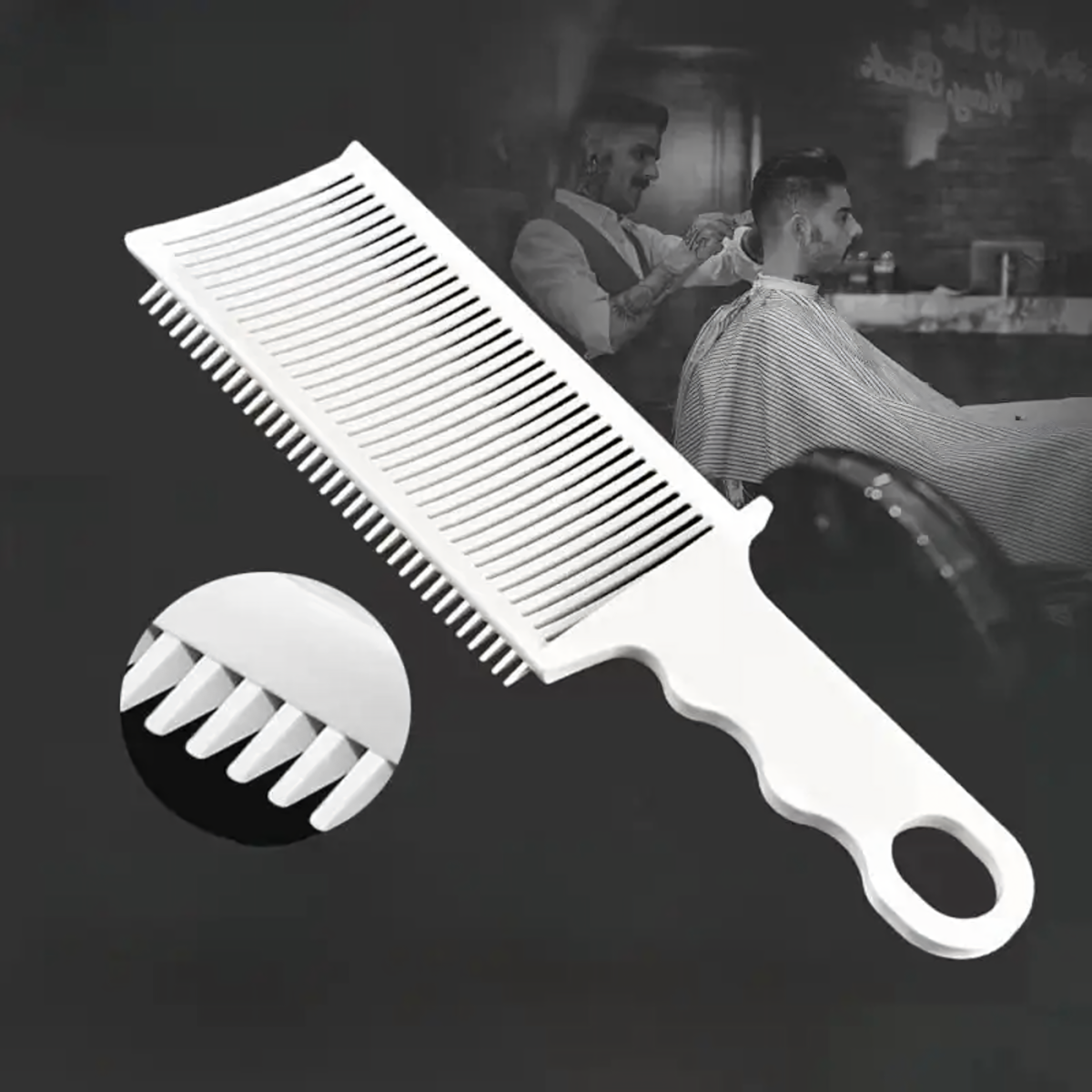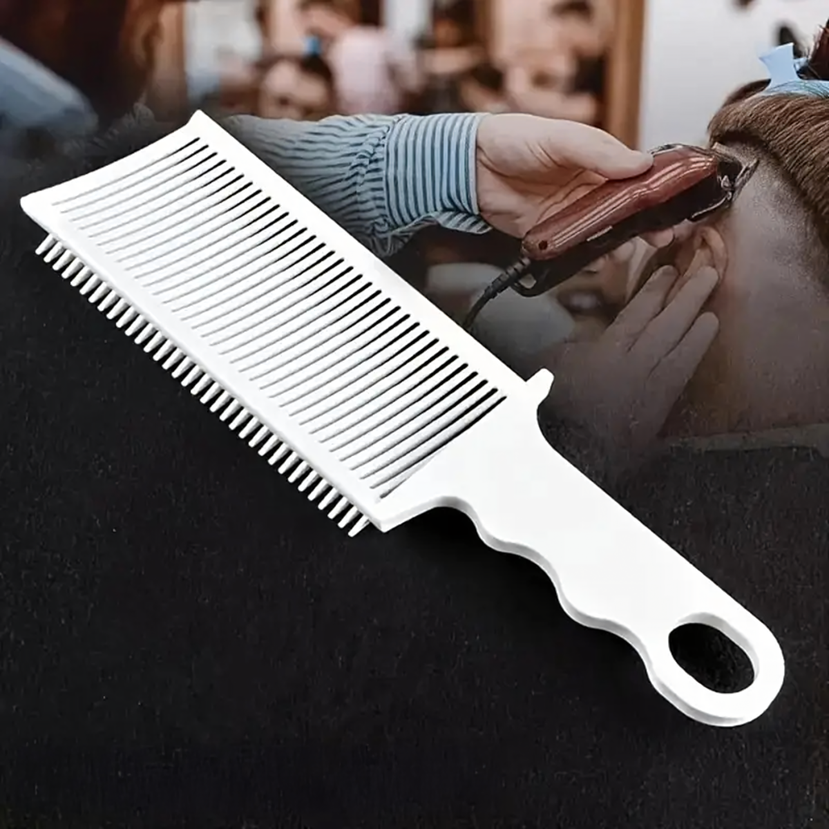 Professionaalne valge juuksurikamm ergonoomilise käepidemega lõikamiseks ja stiliseerimiseks, valmistatud kergest ja vastupidavast materjalist, kergesti puhastatav, ideaalne koduseks ja salongikasutuseks.