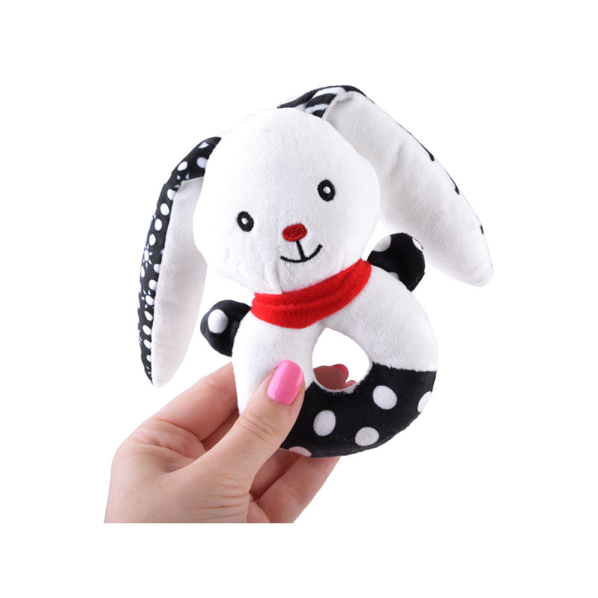 Pehme kontrastne kõristi beebile – loomake KANIN