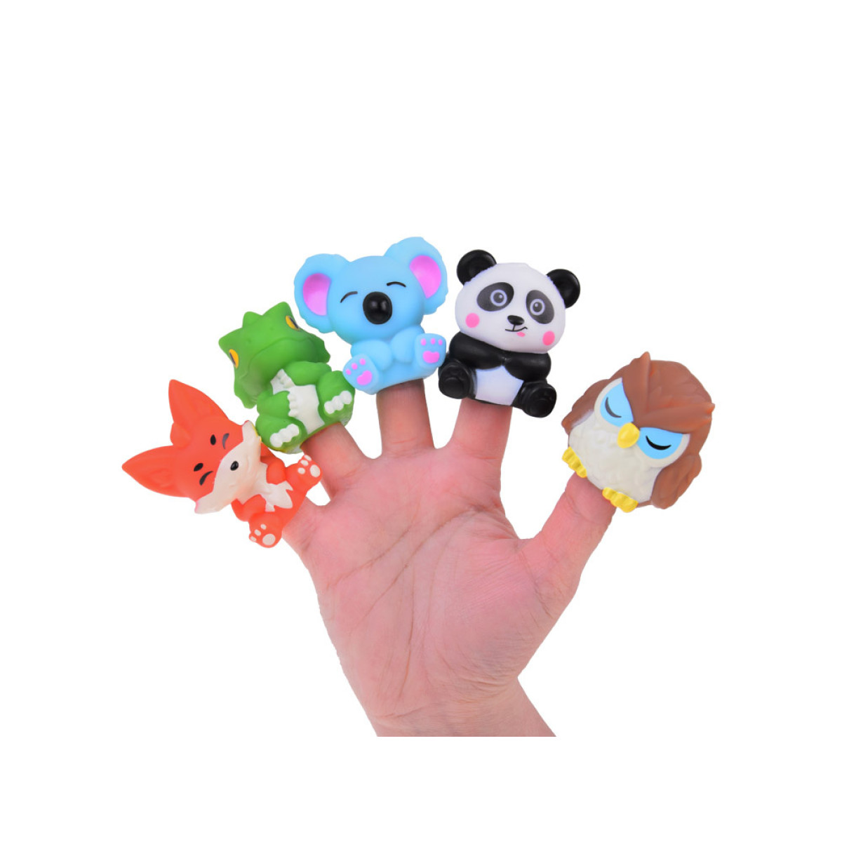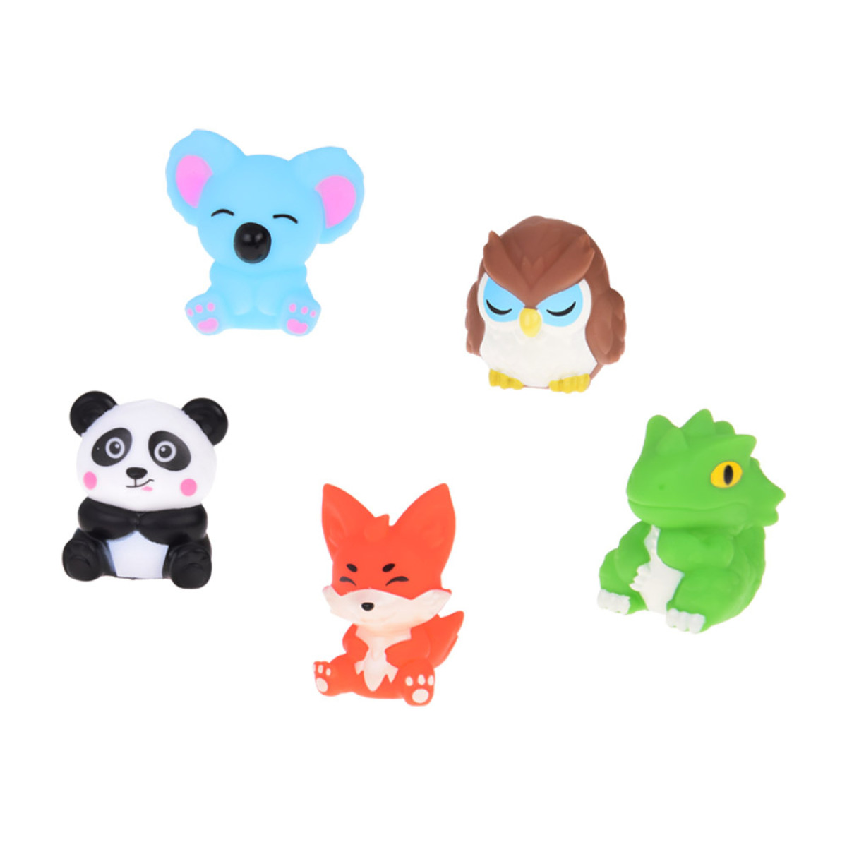 - 5 kummist looma kujukest, igaüks erinevas värvitoonis (panda, rebane, koala, sisalik, öökull) mõõtmetega umbes 5 cm x 4 cm x 4 cm