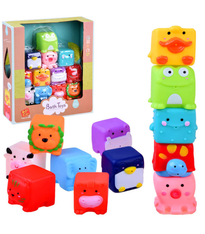 Kummist klotsid on nii atraktiivsed, et nendega saab mängida vees ja ka kuivalt ehitada püramiide, mängida farmi, õppida loomaliike, värve ja arvutamist. Laps ei jää ideedest puudu, et luua loovat vee- ja maismaamängu. Lõbusad loomade näod julgustavad iga väikest last rõõmsaks mänguks. Komplekt on täielikult pakitud värvilisse kartongpakendisse.