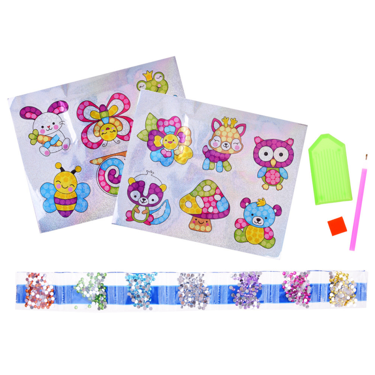 Teemanttikunsti kleebiste loomade komplekt on laste jaoks kõige populaarsem loominguline tegevus. Komplekt võimaldab luua 12 kaunist kleebist erksates värvides teemantidega. Mäng seisneb õige värvi teemantide valimises ja nende liimimisšabloonile paigutamises spetsiaalse pliiatsi abil. Kui elemendid on paigale pandud, saadakse ilus värviline kaunistus. Loovad säravad kleebised saab kasutada lemmikuvaustiku, kausta, päeviku või fotoalbumi kaunistamiseks.