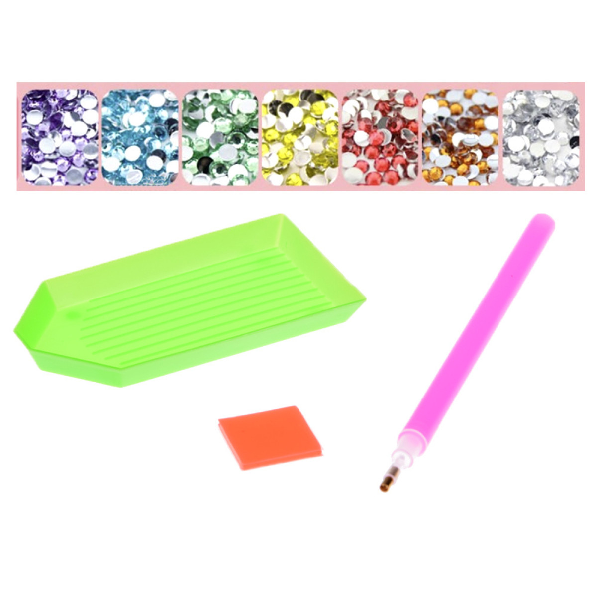 - 7 kotti värviliste teemantidega, umbes 1000 tk (roheline, kollane, roosa, sinine, lilla, oranž, hõbe)
