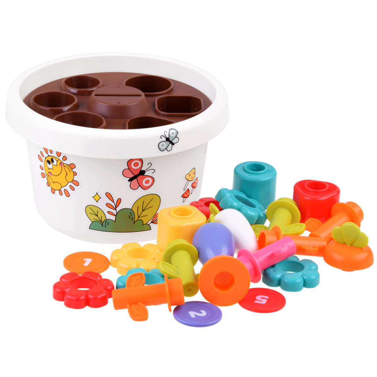 Komplekt sisaldab ka värvilisi kleebiseid, mis sobivad lillepoti kaunistamiseks. Mängimine arendab manuaalseid oskusi ja kreatiivset mõtlemist. Lapsed saavad lõputult mängida väikese aedniku rolli, istutada ja välja tõmmata porgandeid ning ehitada lillepüramiide.