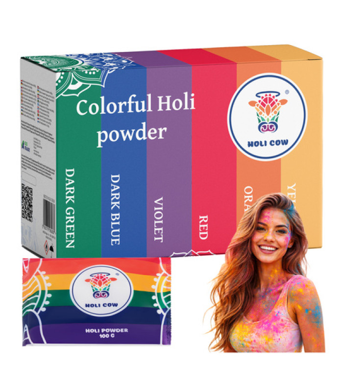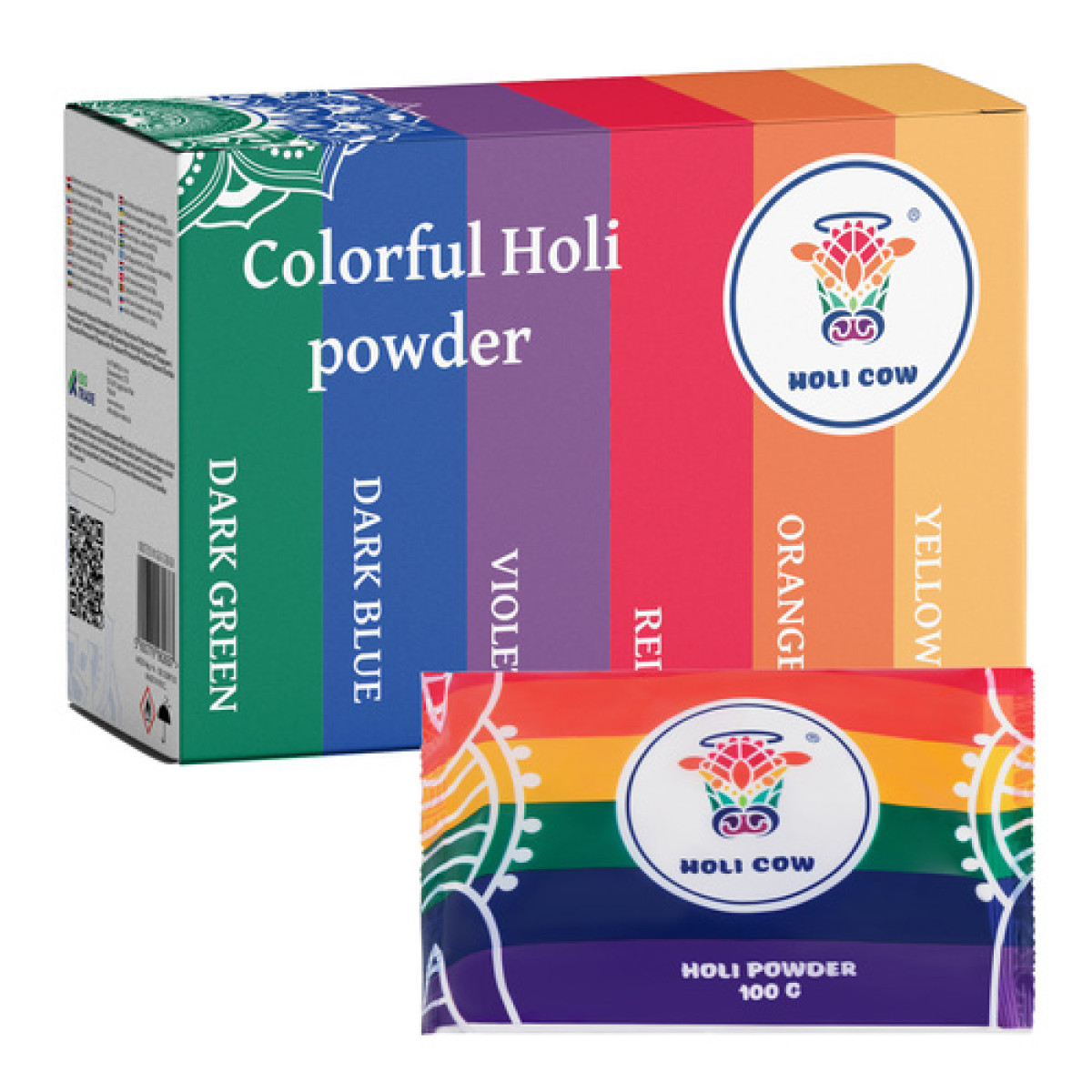 värviline holi pulbri komplekt 6 x 100 g holi cow 27335