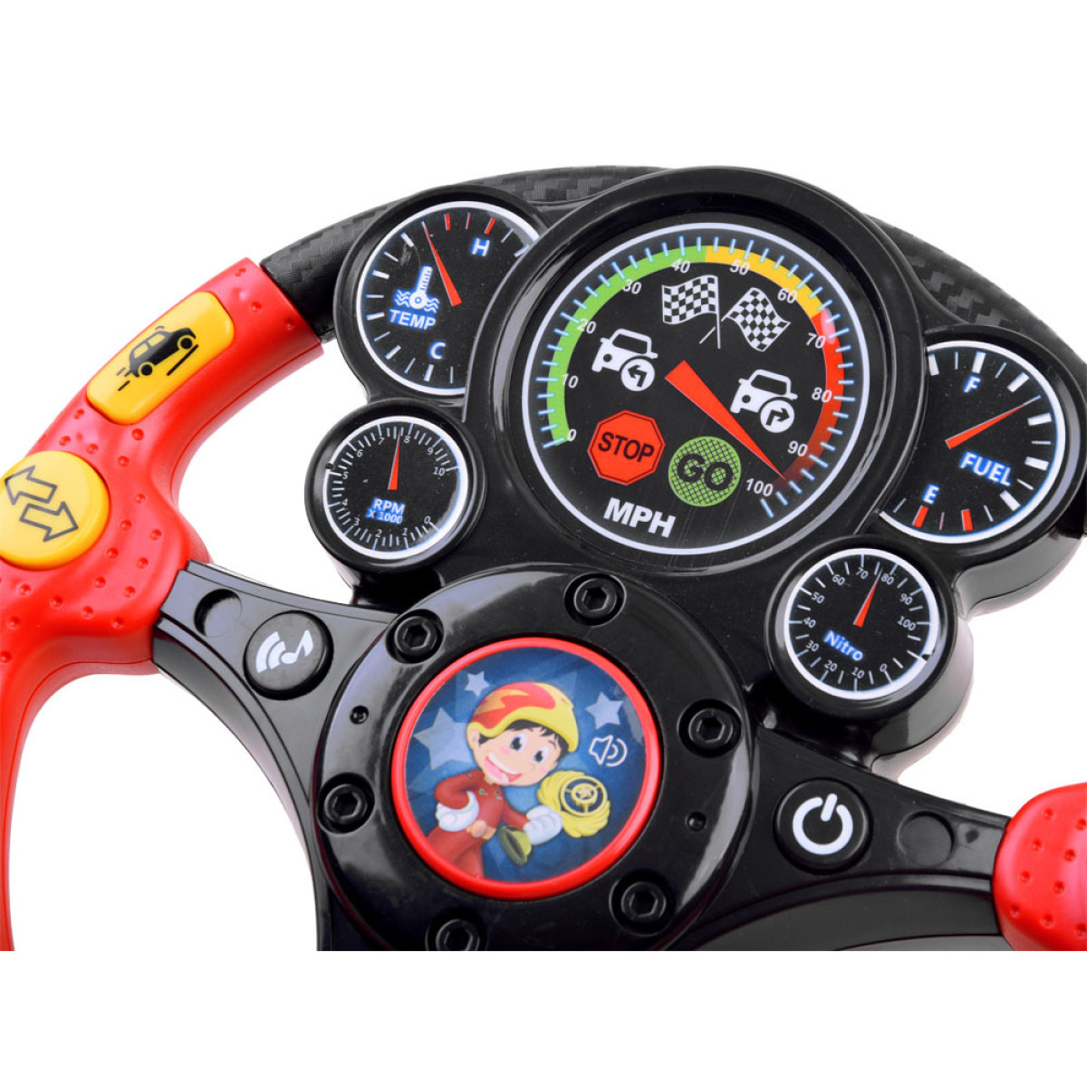 - kollane GO nupp: lülitab sisse rooli vibratsiooni, valgustab kella ja aktiveerib sõitva auto heli