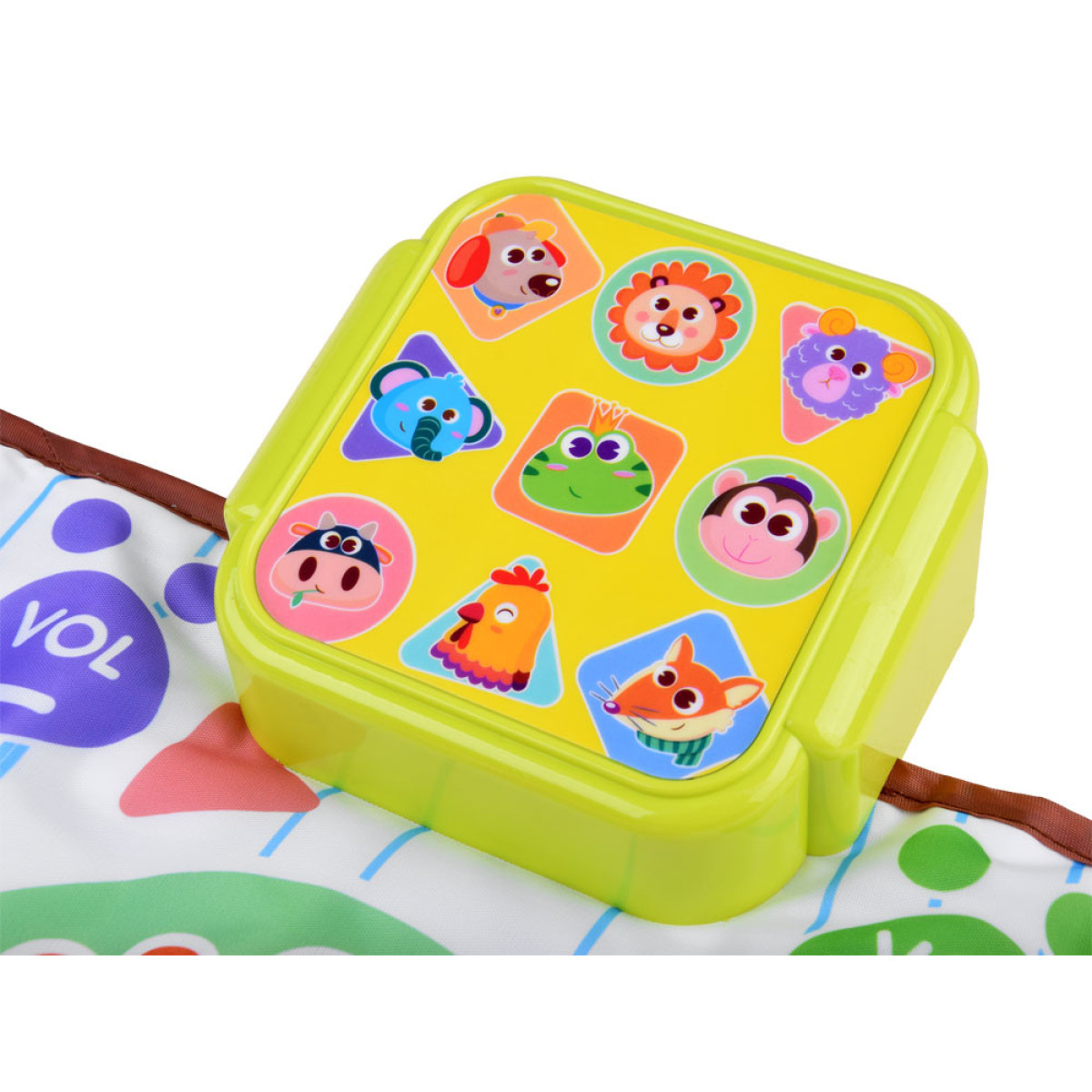 Interaktiivne muusikaline mälugraafika väikestele lastele. Matt on valmistatud pehmest materjalist ja kaunistatud värviliste loomade rõõmsate illustratsioonidega, mis innustavad iga last võtma väljakutset vajutada paneeli valgustatud elemente.