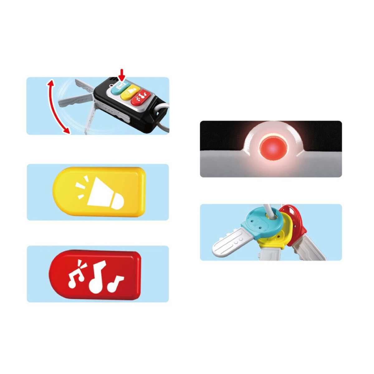 Kolm kinnitatud võtit pakuvad lisahuvitavust, need on värvikoodiga pultide nuppudega. Igal neist on erinev kuju, mis aitab lapsel esemeid eristada ja tähelepanu arendada. Komplektis on ka üks väljatõmmatav võti, mis meenutab päris auto võtit.