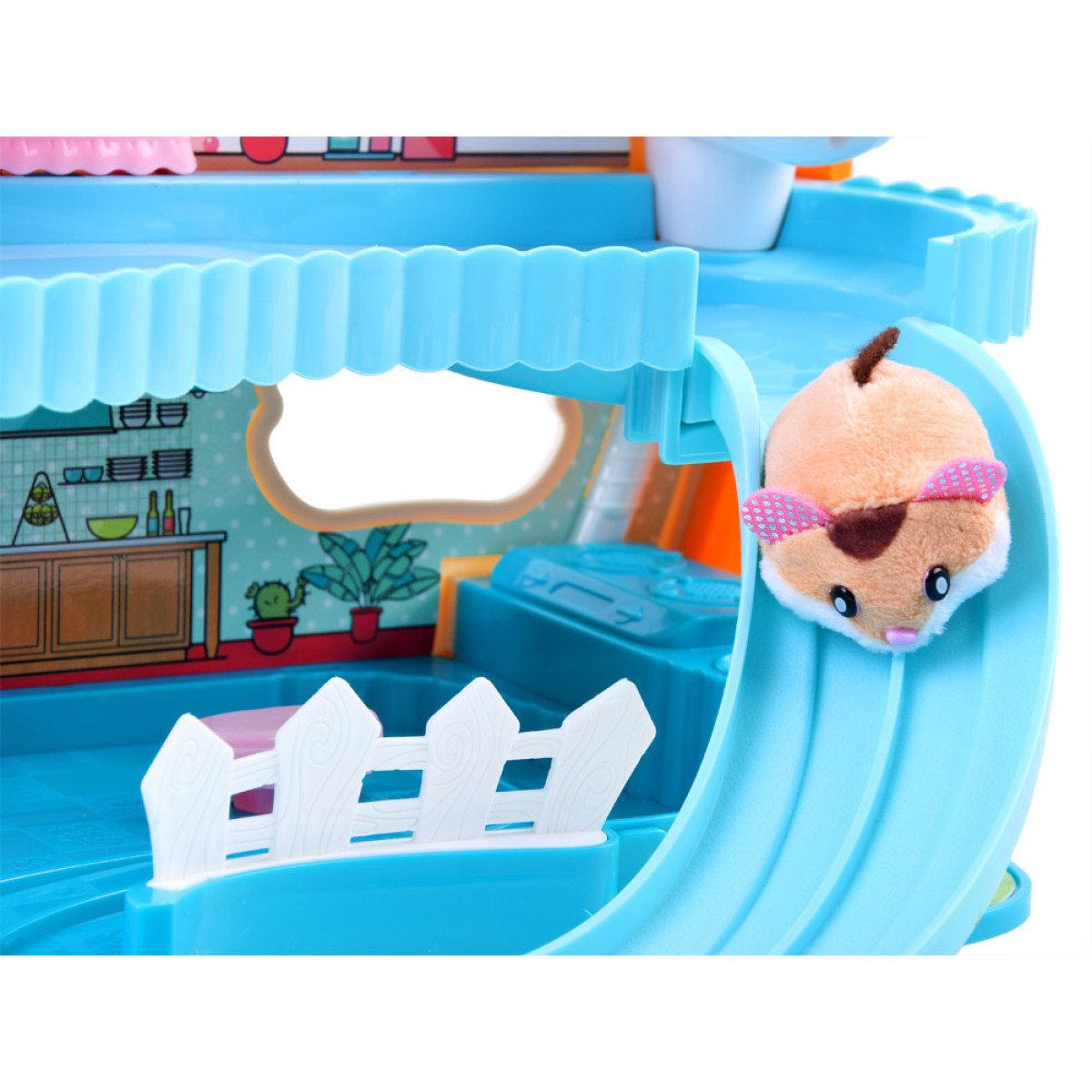 Komplekt on ideaalne iga lapse jaoks, kes soovib omada lemmiklooma, kuid ei saa seda mingil põhjusel. Armas hamster on pehme ja kindlasti võidab lapse südame. Kodu sisaldab kõiki mugavusi, mida väike loomake võiks soovida. Ilusate värvidega ja arvukate atraktsioonidega komplekt pakub palju rõõmu ja pikendab mängutunde.
