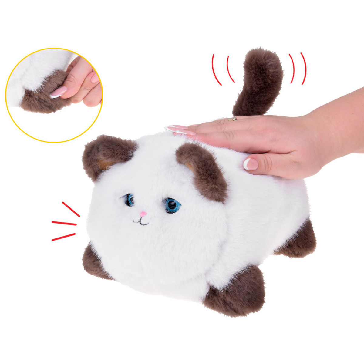 See on karvane, pehme mänguasi, mis reageerib puudutusele - omab heli- ja liikumisefekte. Kui teda seljast silitada, teeb loomake erinevaid mjäugumise ja nurrumise helisid, liigutades samal ajal saba ja pilgutades silmi - nagu päris kass!