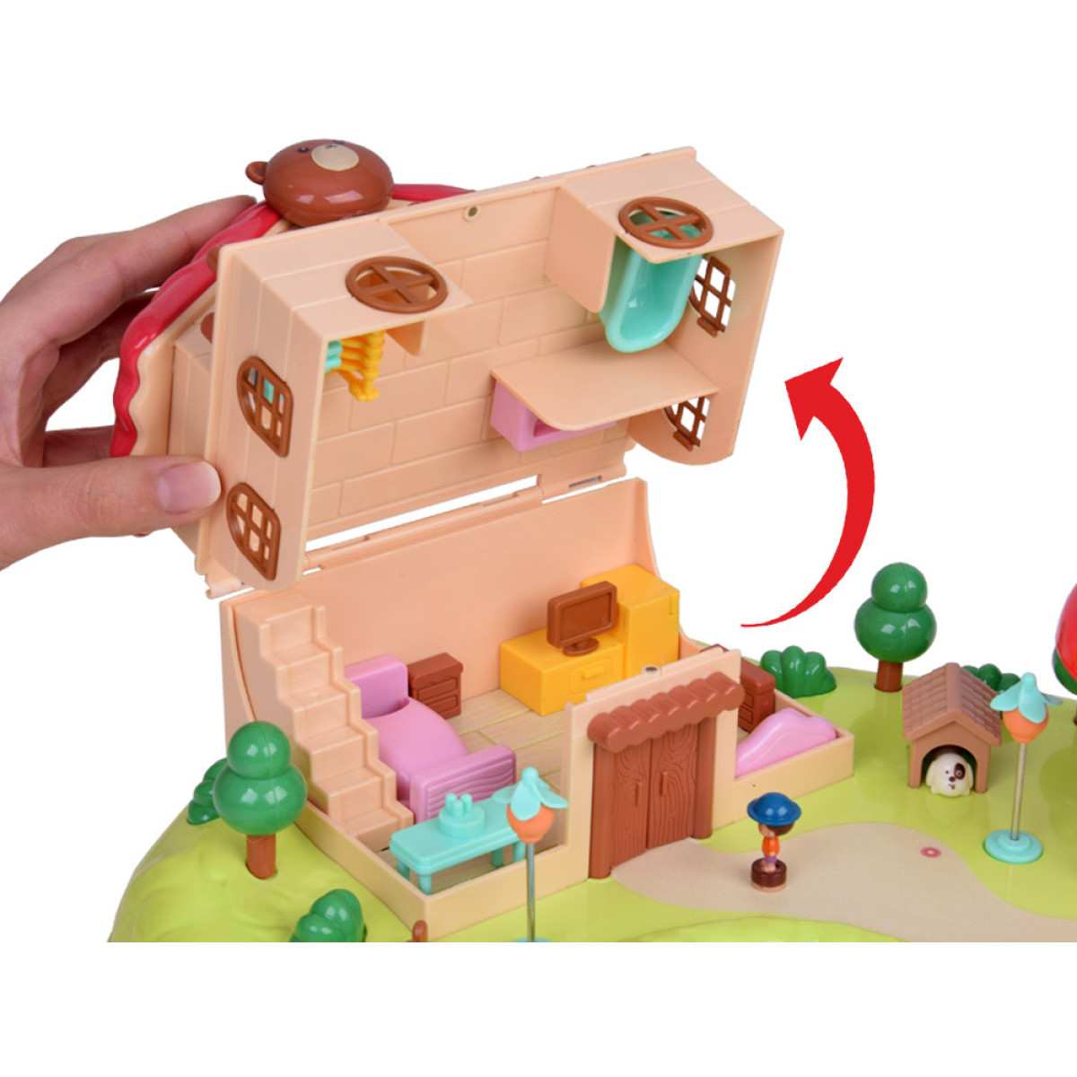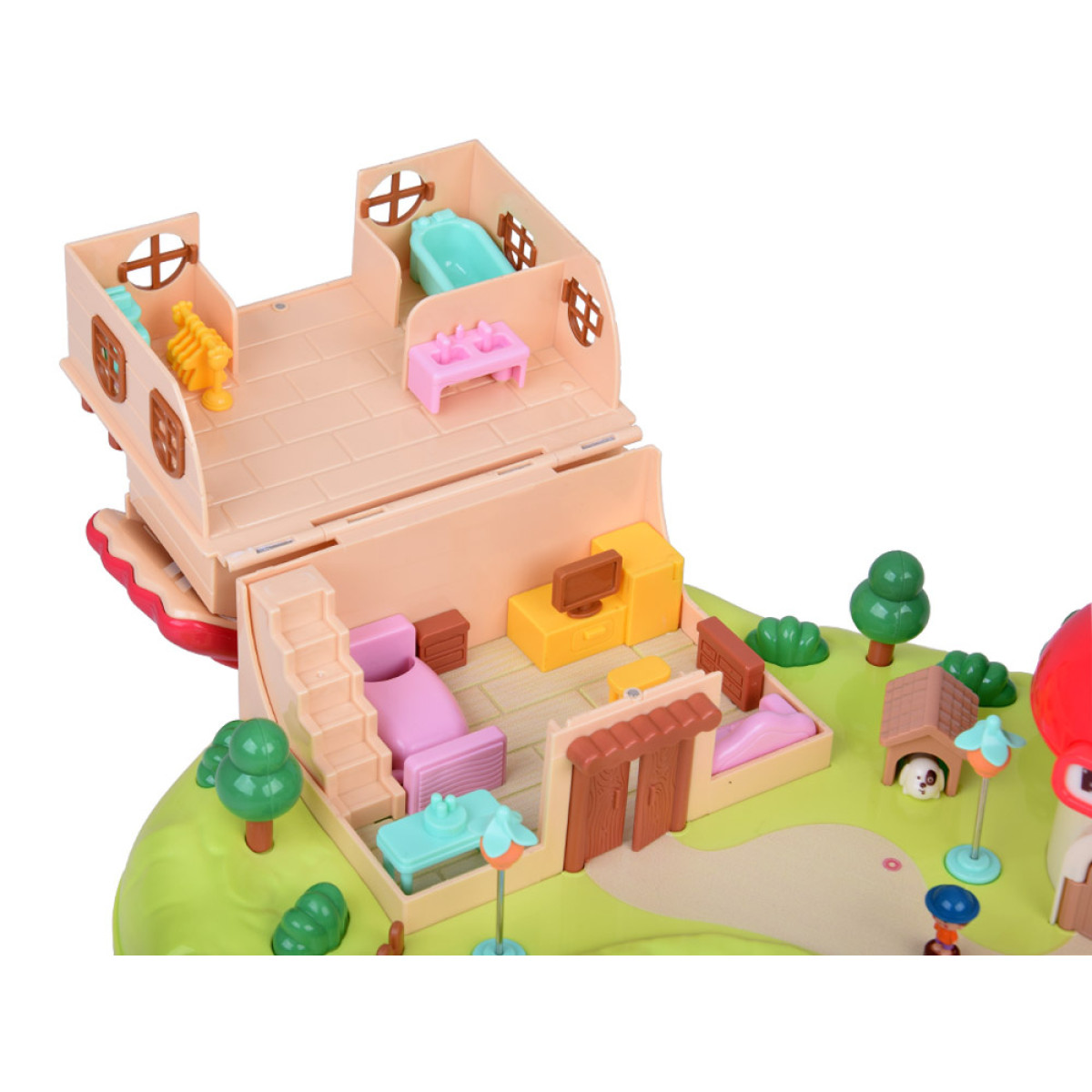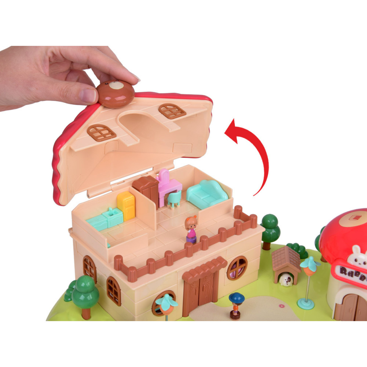 Pärast pakendi avamist tuleb paigutada mööbel ja tegelased, eemaldada seenemaja akustiline kaitse ning mängida võib alata. Laps peab juhtkangiga sinise tiigi pinnal liigutama tegelasi, et nad saaksid porgandeid kasvatada, mänguväljakul karussellil sõita, kiikuda ja oma koerakest külastada. Kahe tasandiga majas on esimesel korrusel tuba, kus on mugav voodi, mille voodipesu saab tõsta, kapp, mis avaneb, kui tegelane selle juurde läheb. Lisaks on elutoas laud, öökapp, televiisor, diivan, kummut. Teisel korrusel on vannituba vanniga, kraanikauss, pesuruum. Kolmandal korrusel leiavad elanikud köögi külmkapiga, kraanikausi, kapi. Kõrval asub tuba tualettlauaga, riidekapp.