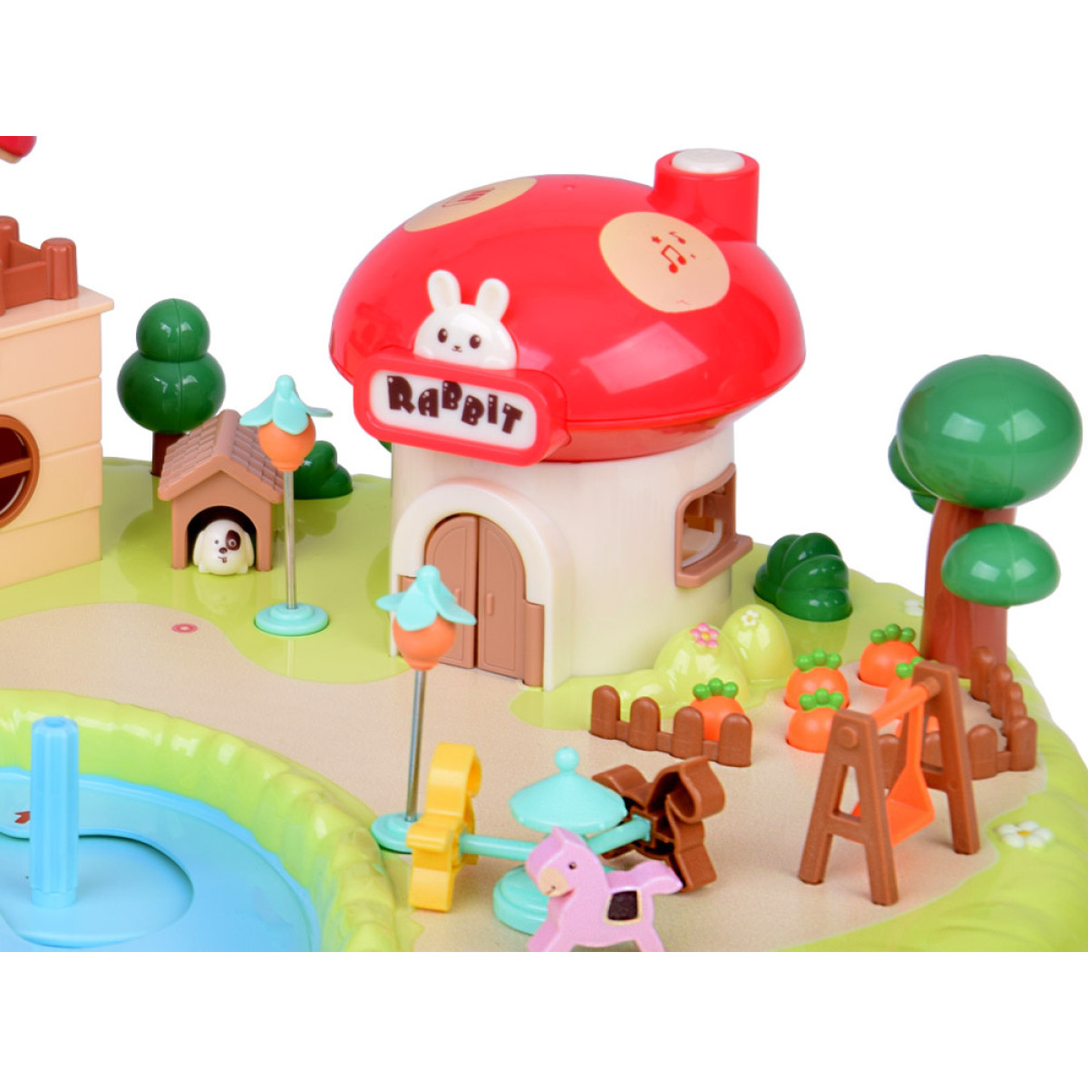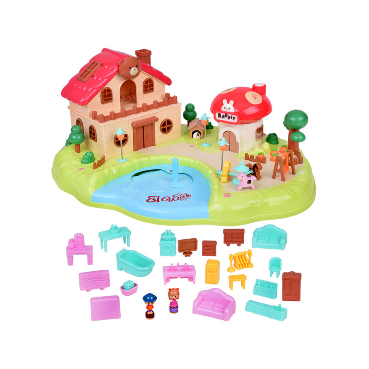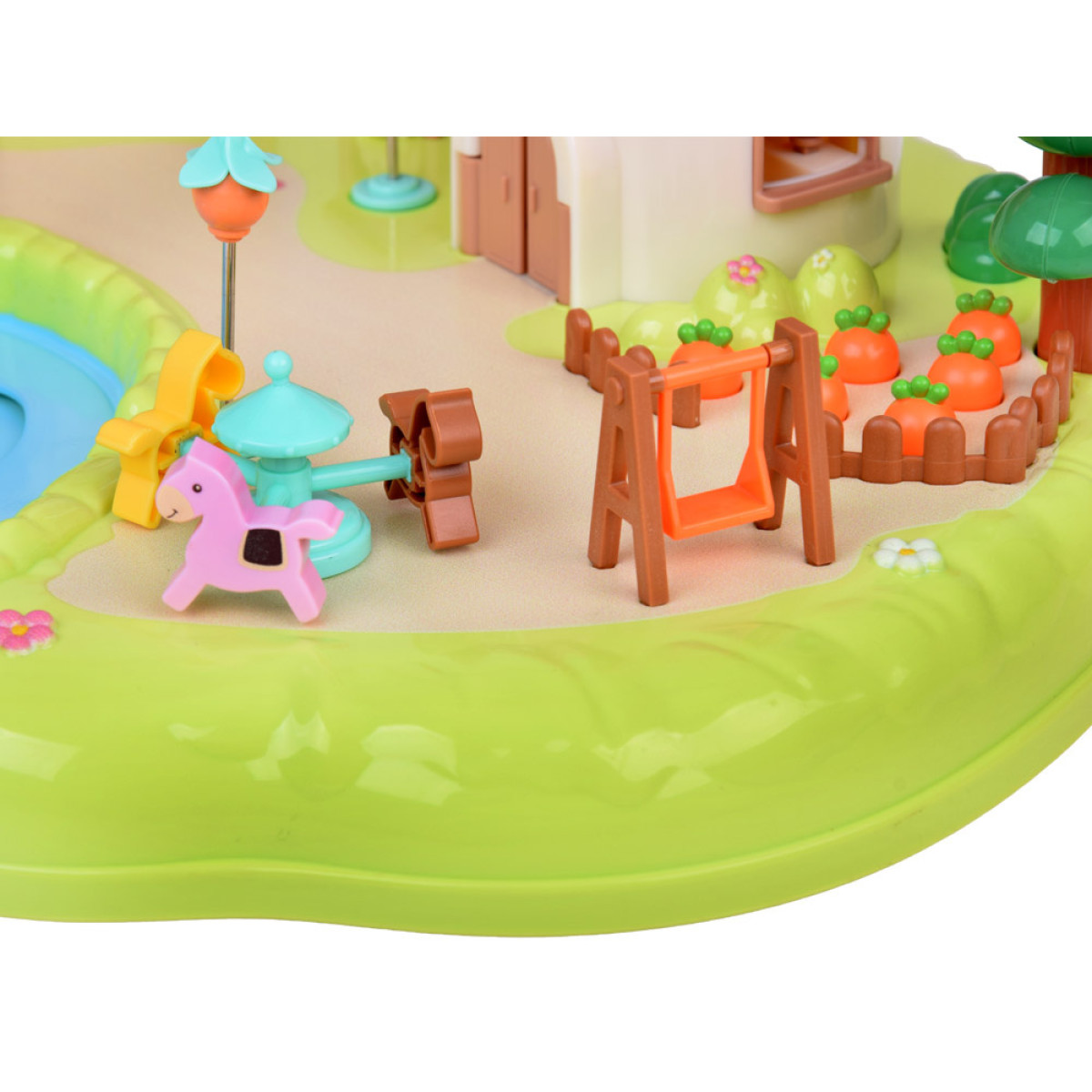 Pärast pakendi avamist tuleb paigutada mööbel ja tegelased, eemaldada seenemaja akustiline kaitse ning mängida võib alata. Laps peab juhtkangiga sinise tiigi pinnal liigutama tegelasi, et nad saaksid porgandeid kasvatada, mänguväljakul karussellil sõita, kiikuda ja oma koerakest külastada. Kahe tasandiga majas on esimesel korrusel tuba, kus on mugav voodi, mille voodipesu saab tõsta, kapp, mis avaneb, kui tegelane selle juurde läheb. Lisaks on elutoas laud, öökapp, televiisor, diivan, kummut. Teisel korrusel on vannituba vanniga, kraanikauss, pesuruum. Kolmandal korrusel leiavad elanikud köögi külmkapiga, kraanikausi, kapi. Kõrval asub tuba tualettlauaga, riidekapp.