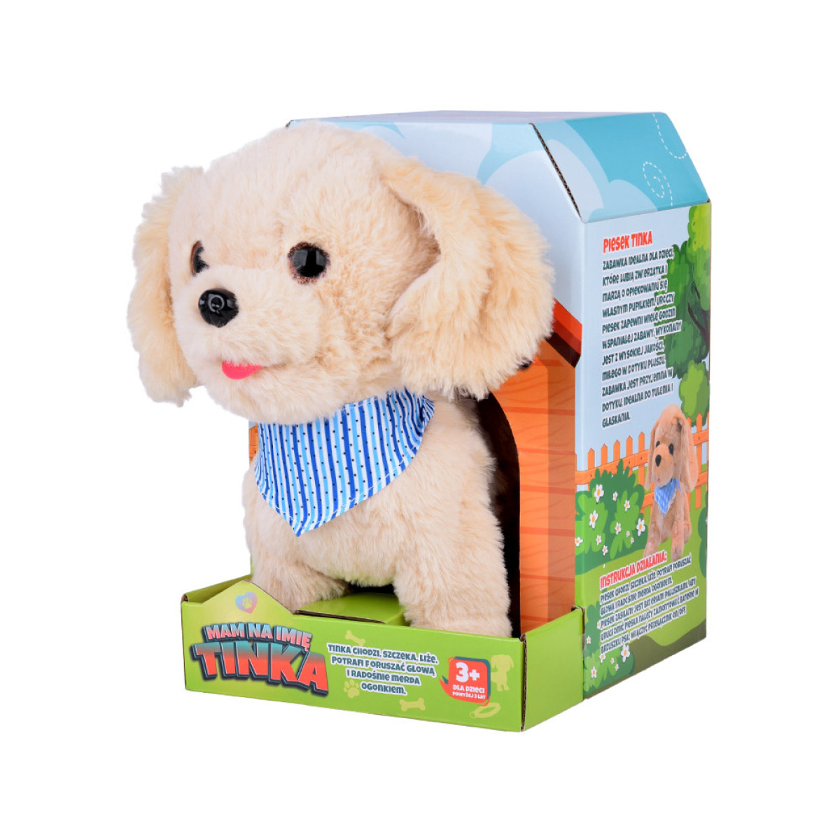 Tinka on interaktiivne mängukoer, kes on ideaalne kaaslane igale lapsele. Sellel pehmel koeral on ilus biskviitkarva karvkate ja sinine kaelarätik, mis võlub igat väikest loomaarmastajat. Tinka on ideaalne mängukaaslane, kes pakub tundideks mängurõõmu ja kaisutusi.
