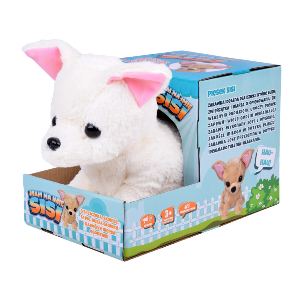Tutvu SISIga – eriline interaktiivne kutsikas, mis võlub kõiki väikeseid loomaarmastajaid. Tänu oma armsale välimusele ja täiustatud funktsioonidele saab SISI teie lapse parimaks sõbraks. Kutsikas SISI on ideaalne mänguasi lastele, kes armastavad loomi ja unistavad oma lemmiklooma eest hoolitsemisest. Kutsikas on kaetud kreemika, pehme plüüsiga, tal on roosad kõrvad ning mustad silmad ja nina. Ta on täielikult katsumisel mõnus ja ideaalne kallistamiseks ning silitamiseks.