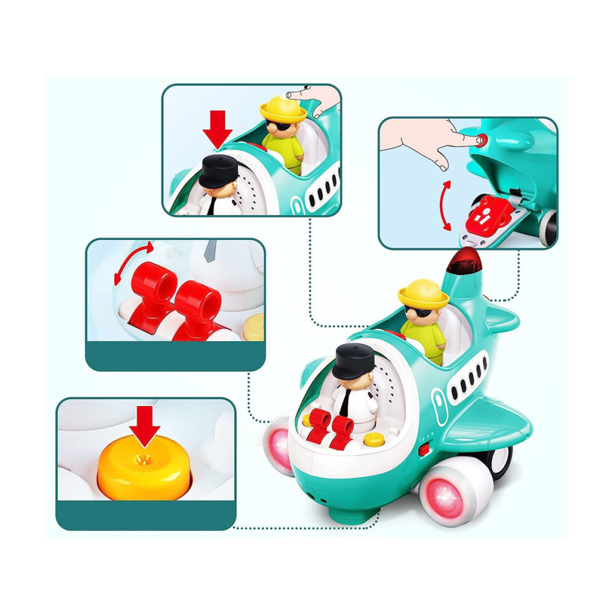 - Helid ja tuled: Lennukil on salvestatud lõbusad meloodiad ja vilkuv valgus muusika saatel.