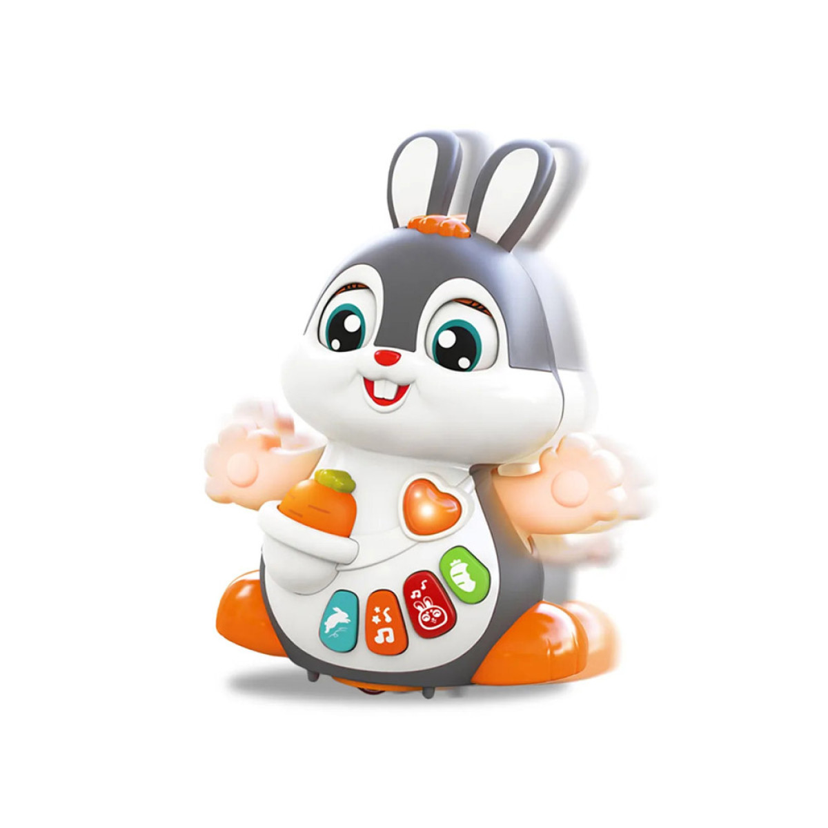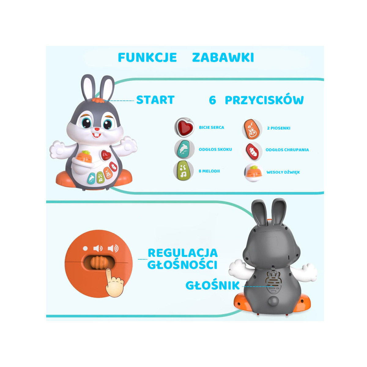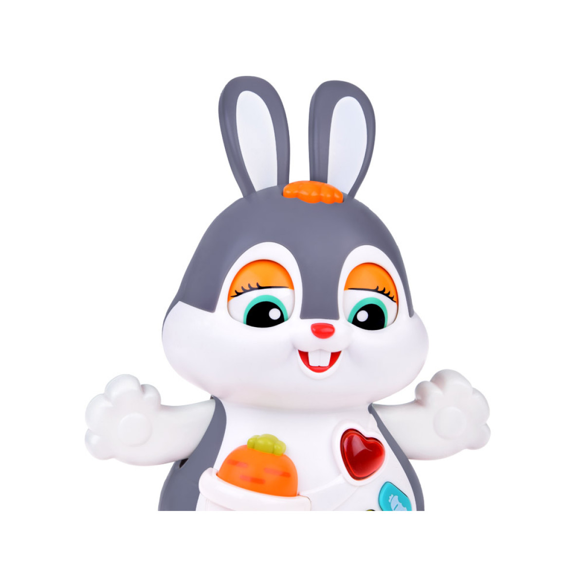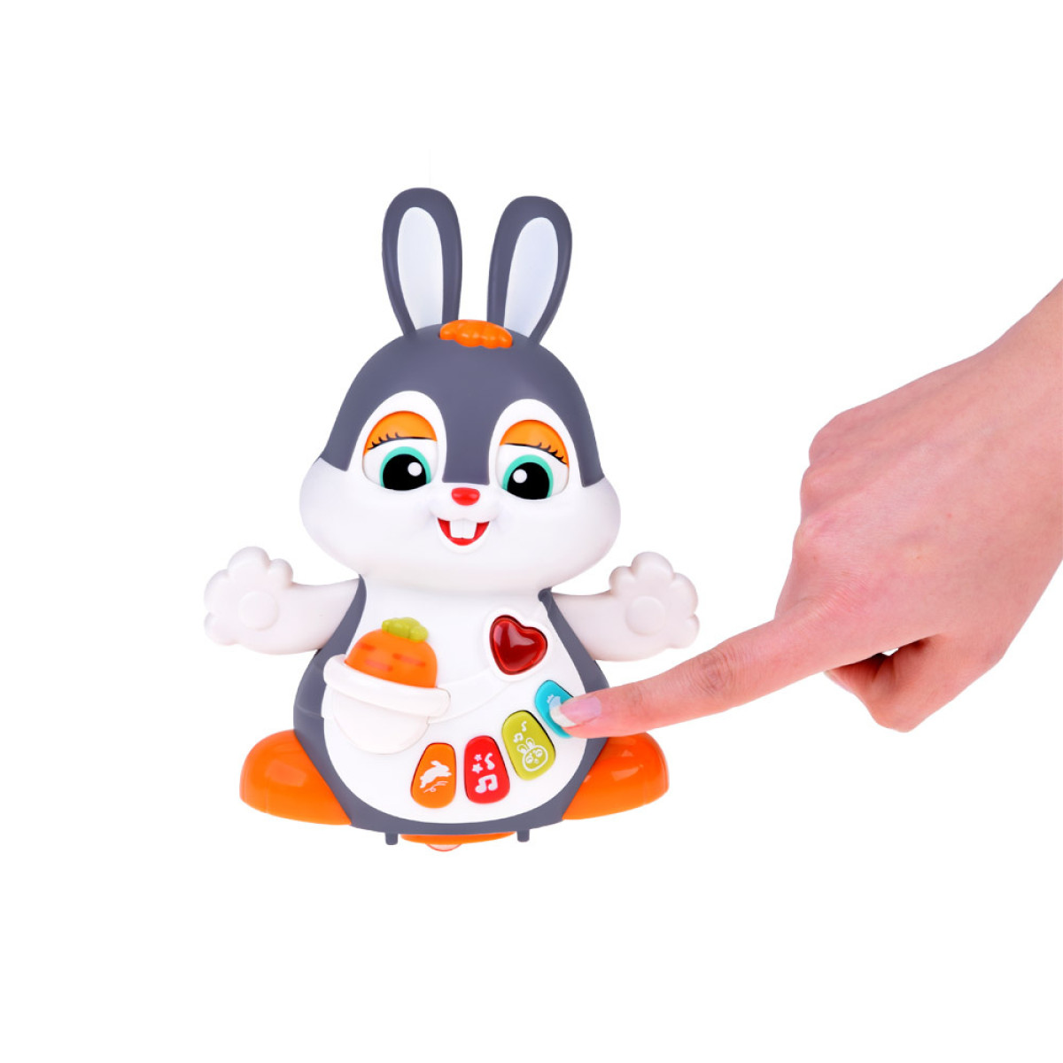 Muusika ja valgus: Jänku tantsib lõbusate laulude rütmis ja vilgutab värvilisi tulesid, mis stimuleerib lapse meeli ja kutsub mängima.