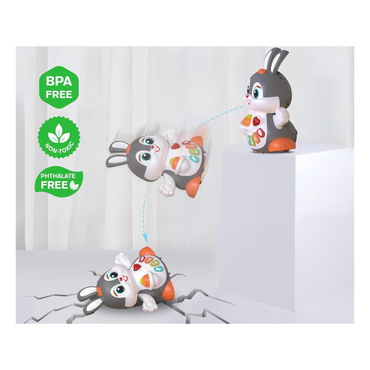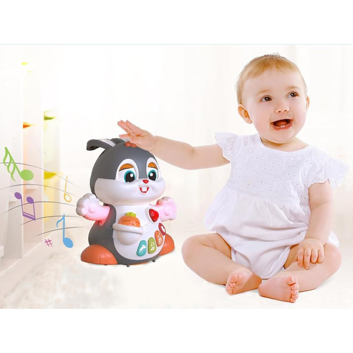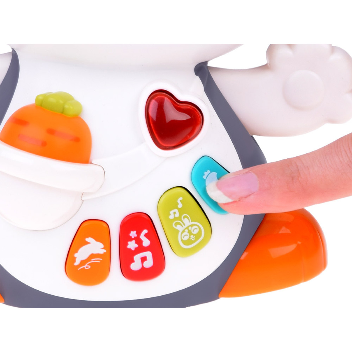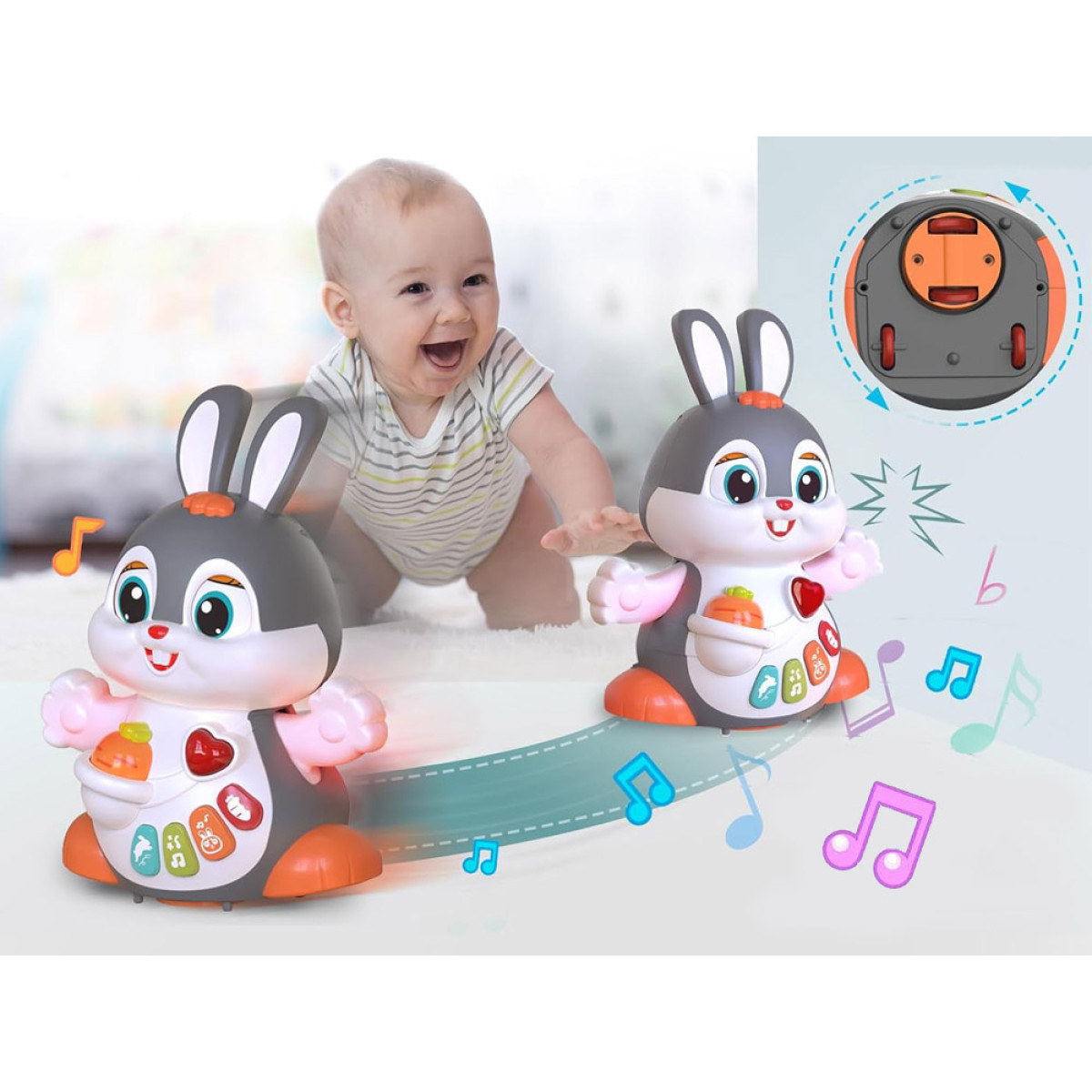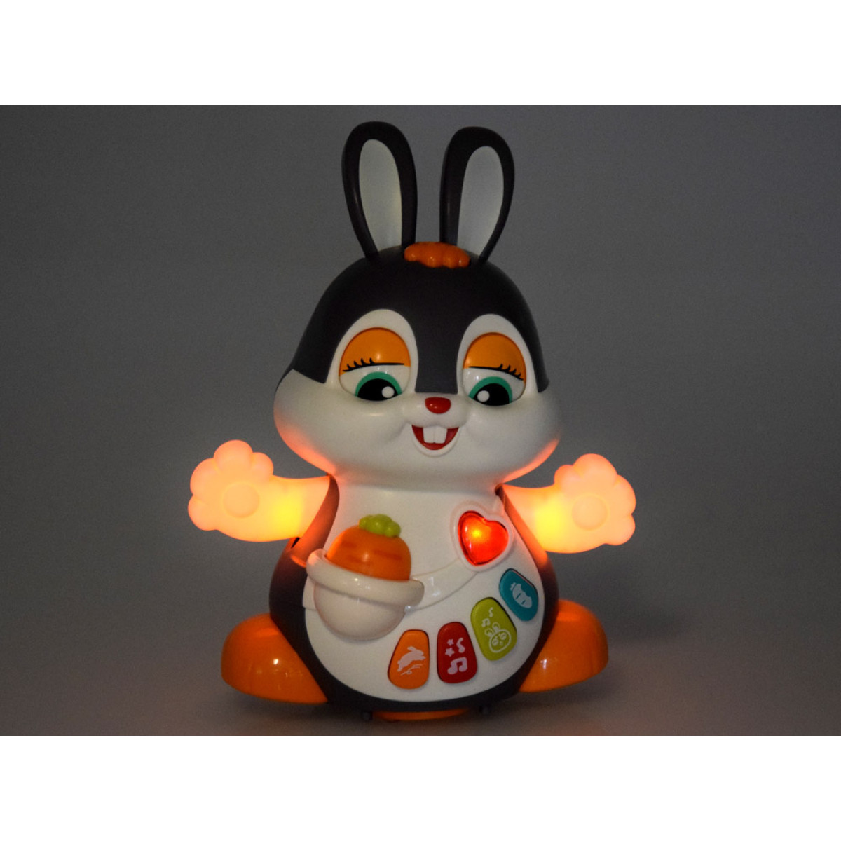 Muusika ja valgus: Jänku tantsib lõbusate laulude rütmis ja vilgutab värvilisi tulesid, mis stimuleerib lapse meeli ja kutsub mängima.