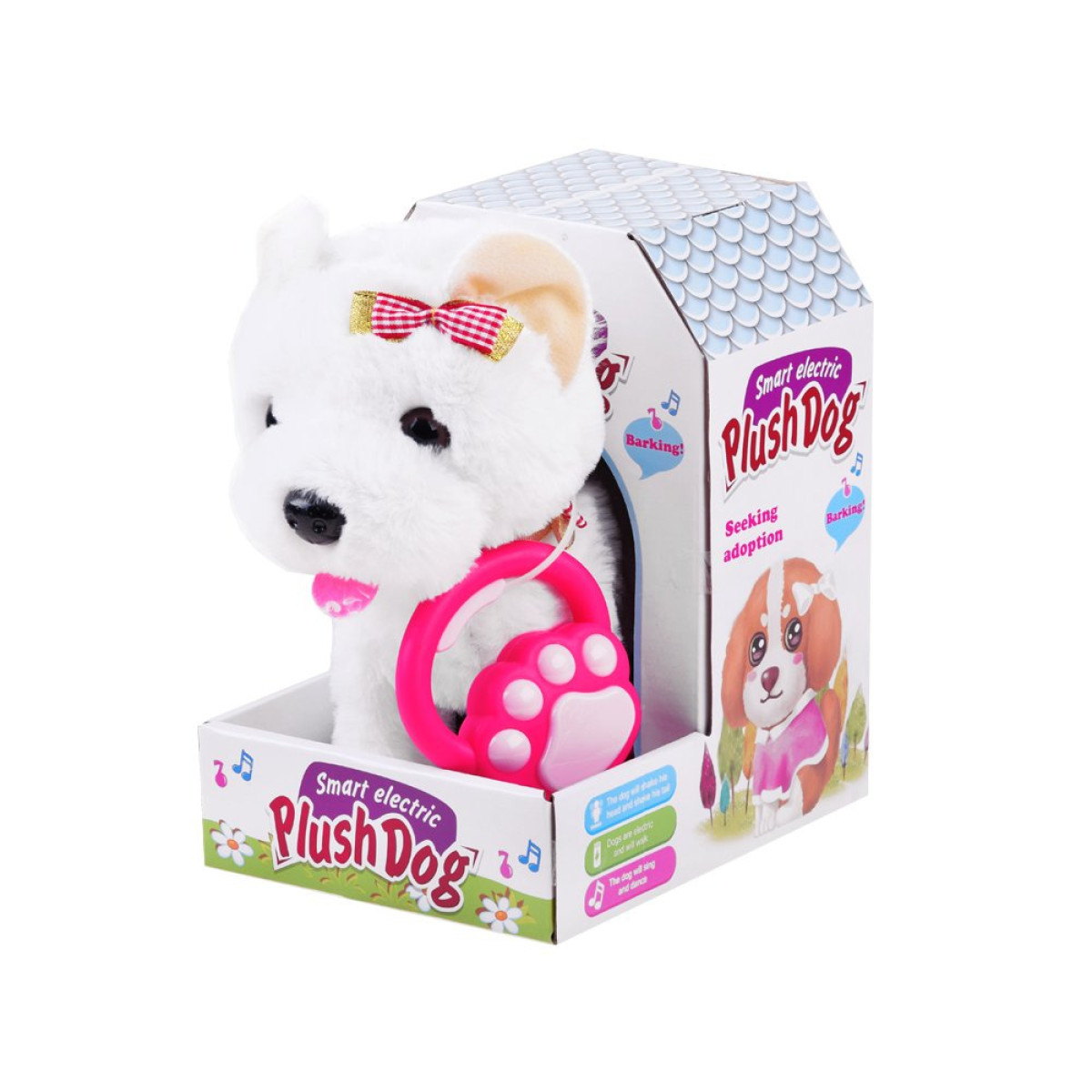 Koer jalutusrihmaga rõõmustab igat lemmikloomafänni. Jokomisiada pood pakub mitmeid interaktiivseid mänguasju, mis jäljendavad lemmikloomi. Mänguasi on pakitud ilusasse karpi, mis jäljendab koera maja, ja sobib ideaalselt kingituseks.