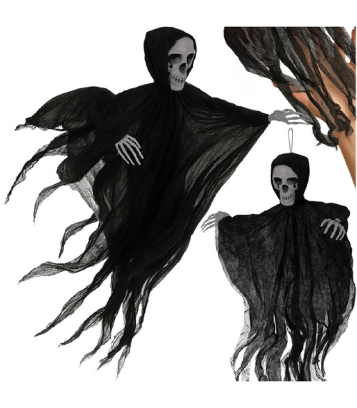 Realistlik kolju ja narmendatud kangaga luustik loob koheselt õõvastava atmosfääri. Kerge konstruktsiooni ja aasa abil saab selle riputada kõikjale - lakke, uksele, lambile või aeda. Tuule käes liikuv kangas tekitab hõljuva vaimu illusiooni ning suur suurus muudab luustiku dekoratsiooni keskpunktiks. Ideaalne Halloweeniks, temaatilistele pidudele või lavakujundusele - valmiskujundus, mis alati püüab pilku.