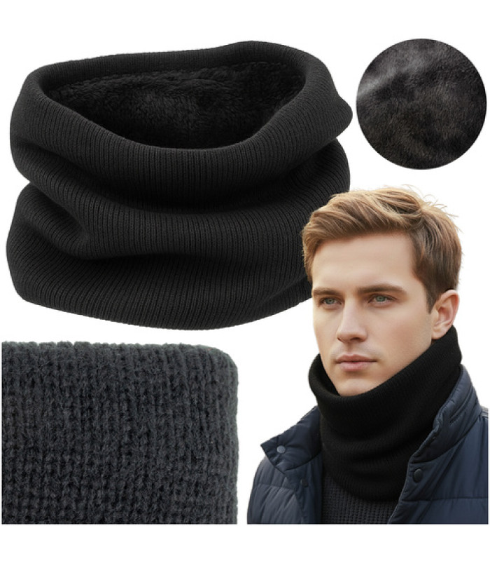 Vyriška kaklo šildytuvė, juoda, Trizand, universalaus dydžio, šiltas ir stilingas žiemos aksesuaras.