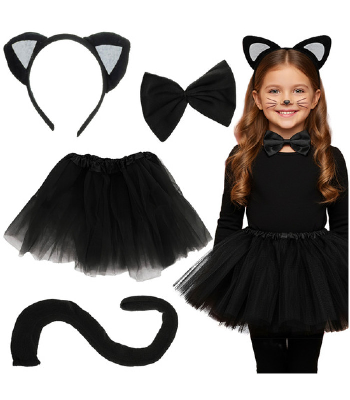 KRUZZEL juodos katės kostiumas mergaitėms, maskuotė, 4 viename rinkinys!