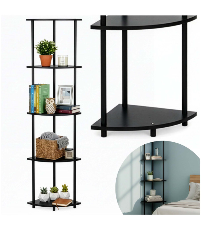 Kaubamärk: Springos® Materjal: metall, MDF Värv: must Maksimaalne koormus: 20 kg Maksimaalne koormus riiulile: 4 kg Riiulite arv: 5 Jalgade arv: 4 Mõõtmed: Kogukõrgus: 147 cm Kogulaius: 29,5 cm Kogusügavus: 29,5 cm Riiulite kõrgus põrandast: 3 / 39 / 74 / 110 / 146 cm Riiuli diagonaalpikkus: 41,5 cm Riiuli laius: 29,5 cm Riiuli sügavus: 29,5 cm Riiuli ümbermõõt: 46 cm Riiuli paksus: u. 1,2 cm Konstruktsiooni profiilide diameeter: 2 cm Konstruktsiooni profiilide pikkus: 34 cm Jalgade kõrgus: 3 cm Jalgade diameeter: 2 cm Kaugus põrandast esimese riiulini: 3 cm Kaugus konstruktsiooni profiilide vahel: 20,5 cm Riiulite vahe: u. 34 cm Lisainfo: Toode on mõeldud iseseisvaks kokkupanekuks vastavalt juhendile Kinnituselemendid kuuluvad komplekti Mõõtmete tolerants on 2%