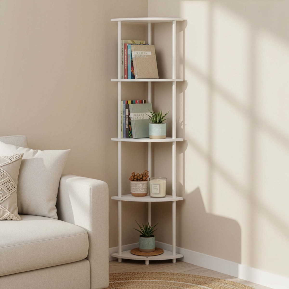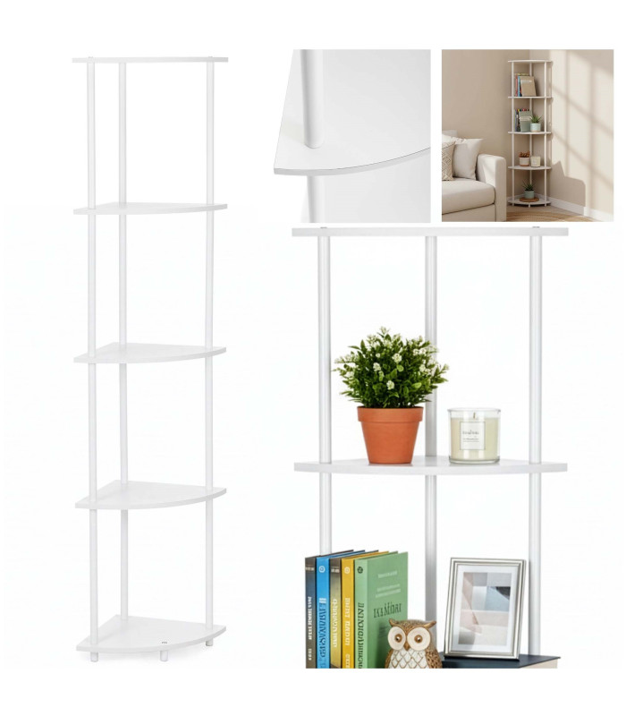 Kaubamärk: Springos® Materjal: metall, MDF Värv: valge Maksimaalne koormus: 20 kg Maksimaalne koormus riiulile: 4 kg Riiulite arv: 5 Jalgade arv: 4 Mõõtmed: Kogukõrgus: 147 cm Kogulaius: 29,5 cm Kogusügavus: 29,5 cm Riiulite kõrgus põrandast: 3 / 39 / 74 / 110 / 146 cm Riiuli diagonaalpikkus: 41,5 cm Riiuli laius: 29,5 cm Riiuli sügavus: 29,5 cm Riiuli ümbermõõt: 46 cm Riiuli paksus: u. 1,2 cm Konstruktsiooni profiilide diameeter: 2 cm Konstruktsiooni profiilide pikkus: 34 cm Jalgade kõrgus: 3 cm Jalgade diameeter: 2 cm Kaugus põrandast esimese riiulini: 3 cm Kaugus konstruktsiooni profiilide vahel: 20,5 cm Riiulite vahe: u. 34 cm Lisainfo: Toode on mõeldud iseseisvaks kokkupanekuks vastavalt juhendile Kinnituselemendid kuuluvad komplekti Mõõtmete tolerants on 2%