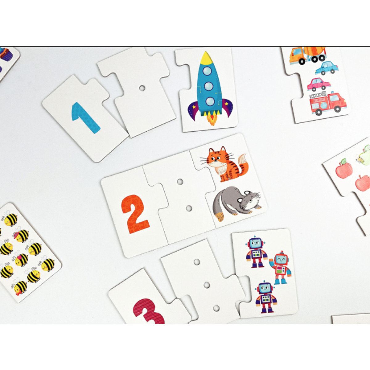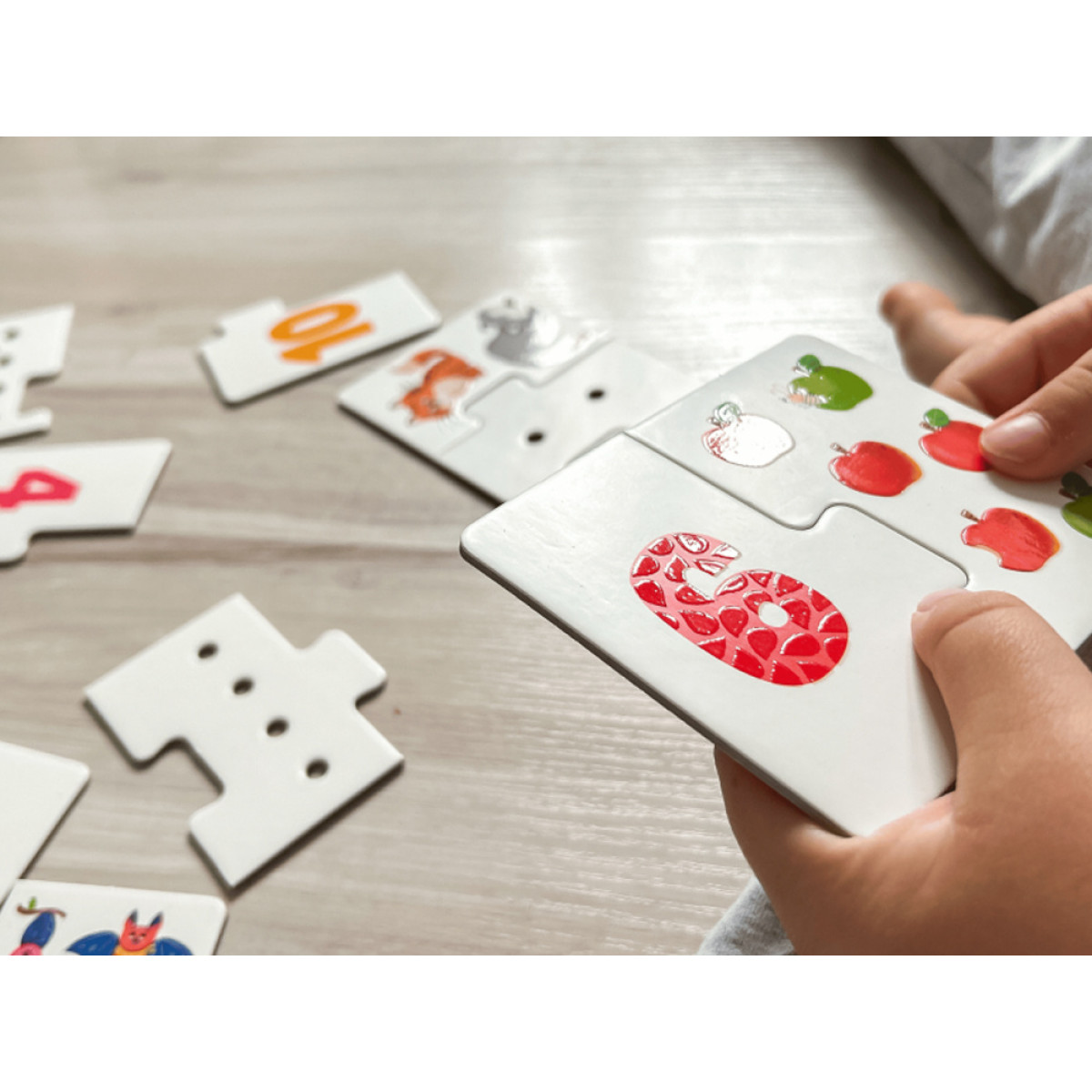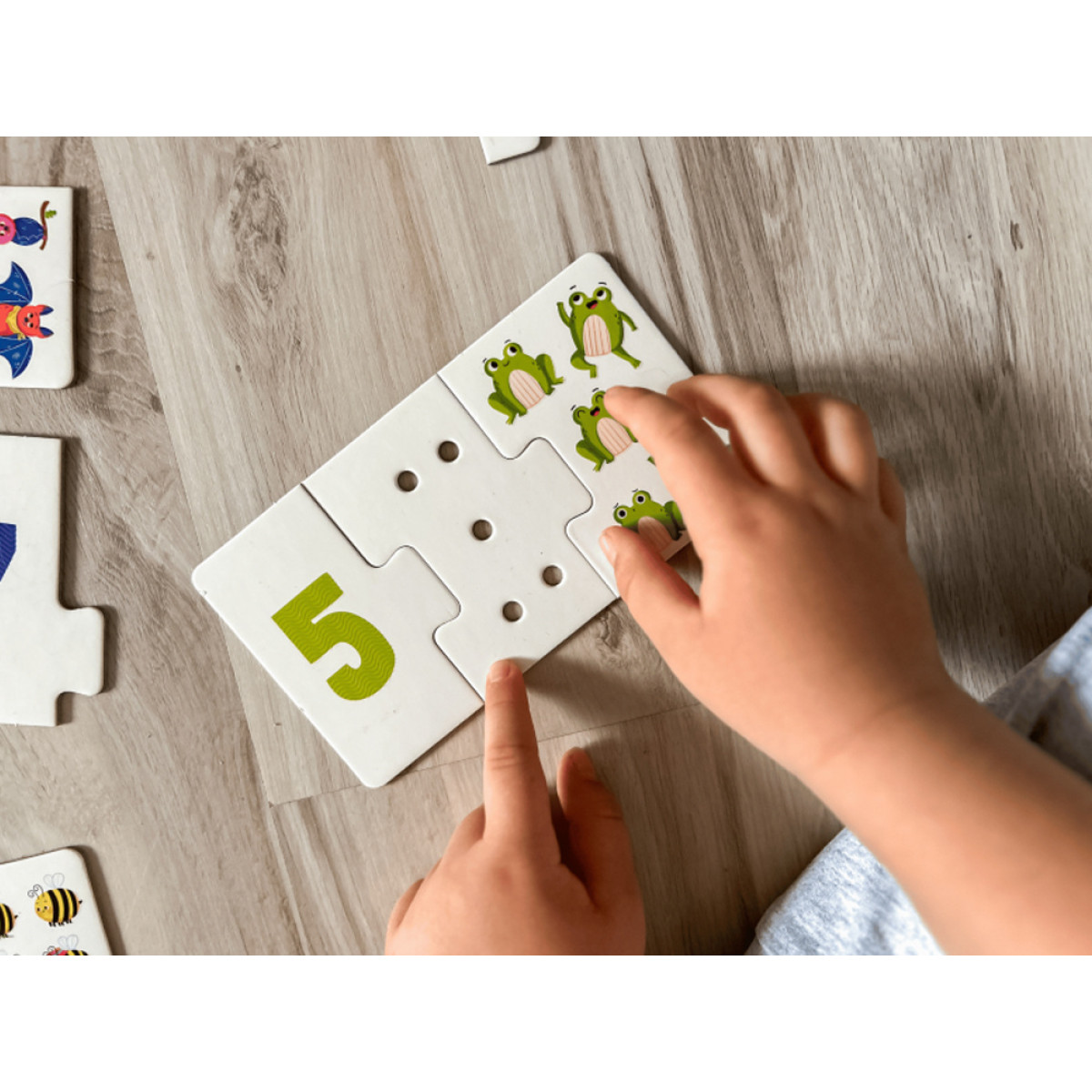 „1” nagu üks õun, „5” nagu viis kala – nende pusledega muutub numbrite õppimine suurepäraseks mänguks! Komplektis on 10 kolmest tükist koosnevat puslet (kokku 30 puslet), mis aitavad tundma õppida numbreid 0 kuni 9 ja mõista, mida need tähendavad.