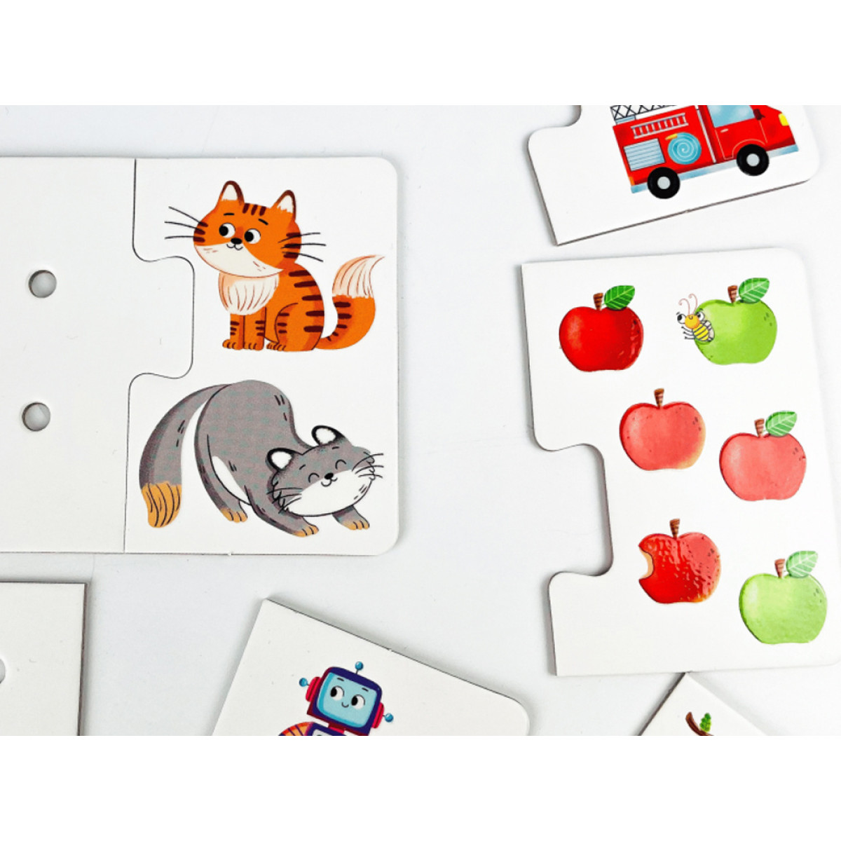 Lõbusad ja värvilised illustratsioonid kujutavad loomi, puuvilju ja esemeid, mida lapsed igapäevaelust tunnevad. Komplekt sisaldab ka juhendit mänguideedega, mis teevad loendamise õppimise veelgi põnevamaks!