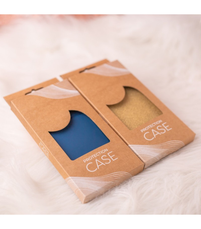 Cardboard box for phone overlays and covers. The product is universal and has a hole for easy hanging on hooks. The packaging has a minimalist design. The cardboard is recyclable. We limit the number of prints to protect our natural environment.