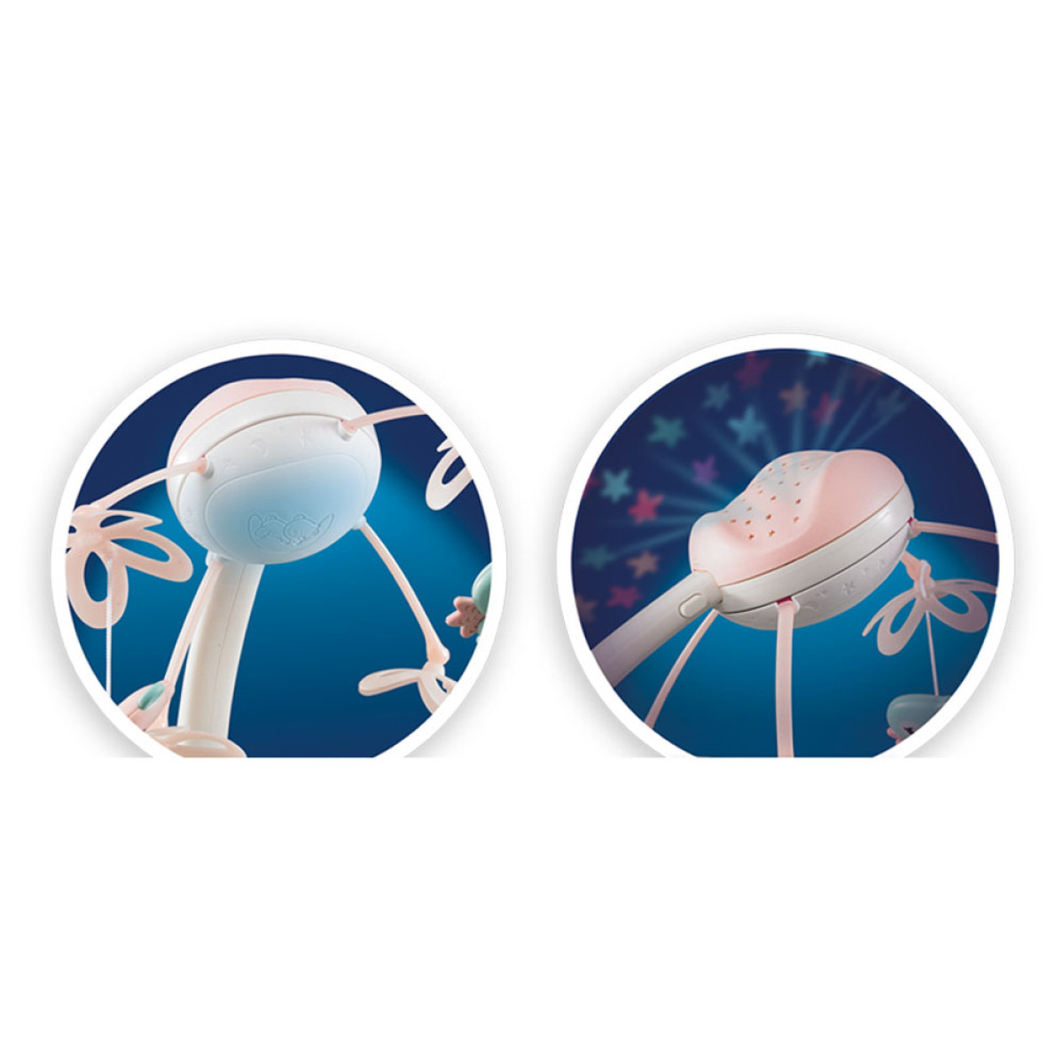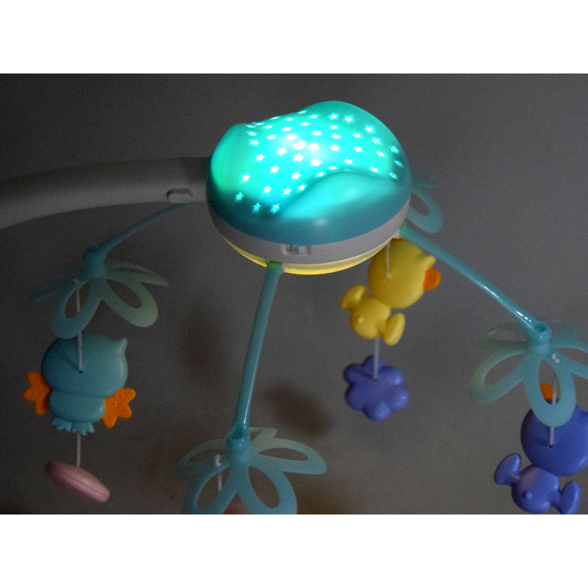 - karussellil on lisaks projektori funktsioon, mis kuvab lakke värvilisi tähti ja annab pehme valguse. Beebid on vaimustuses vaadates värvilisi ripatseid või projektsiooni
