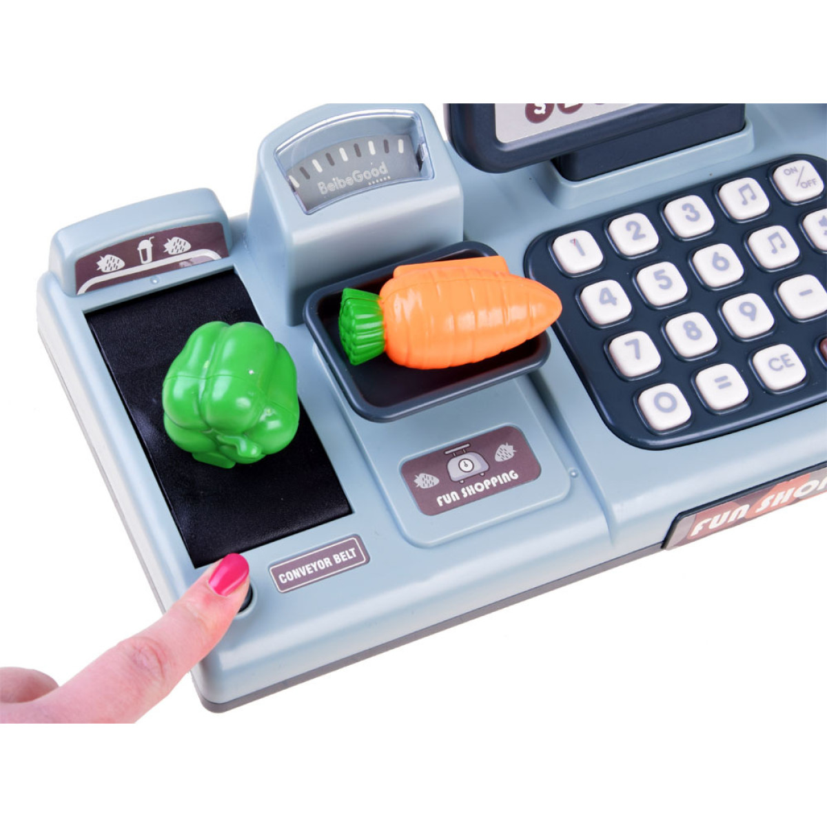 Laste kassaaparaat skanneri, kaalu ja nutitelefoniga