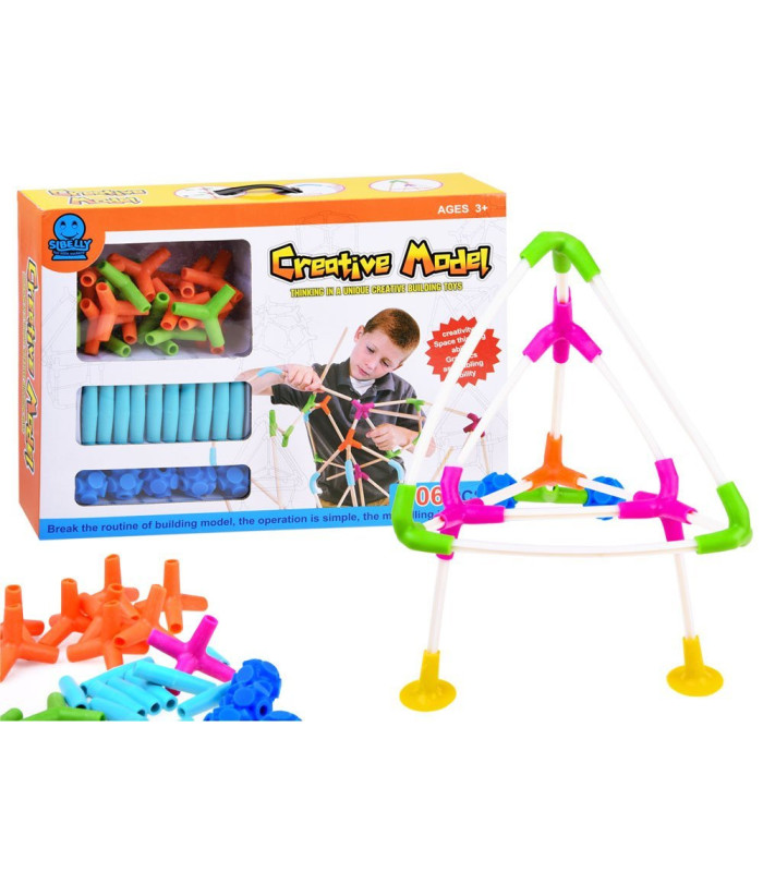 Ideaalne kooli tehniliste ja kunstitundide jaoks. Plastikust pulgad erineva pikkusega, kummist ühendused ja iminapad võimaldavad ehitada tõeliselt ruumilisi konstruktsioone. Lihtne koostamise põhimõte võimaldab mõne hetkega kujundada peaaegu iga kuju. Olgu see maja, laev, rakett, lennuk või auto, igaüks neist konstruktsioonidest on teostatav.