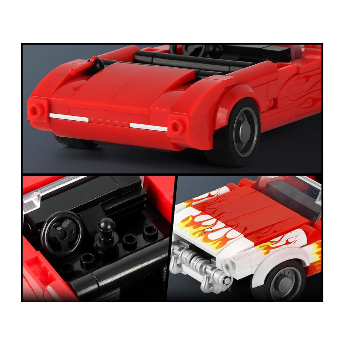 Komplekt klotsidest, mis võimaldab kokku panna klassikalise kabrioleti, mis on inspireeritud 1950ndate Ameerika autodest, on tõeline maiuspala igale autoentusiastile ja klotside fännile. Mudel, millel on ikooniline piklik kuju, on muudetud hot rod'iks - seetõttu on tal iseloomulikud veljed, leegid kapotil ja külgedel ning ainulaadne esistange.