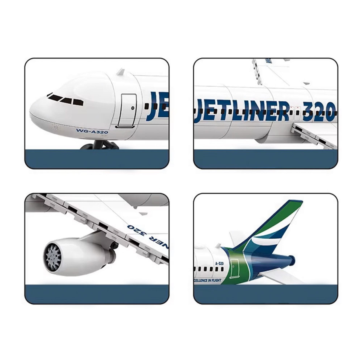 Konstruktorite klotsid Jetliner 320 reisilennuk on ideaalne valik igale klotside fännile ja tsiviillennunduse huvilisele. Klotside kokkupanek pakub palju lõbusat aega ja valmis mudelit saab uhkusega riiulile asetada või kasutada edasiseks mänguks.