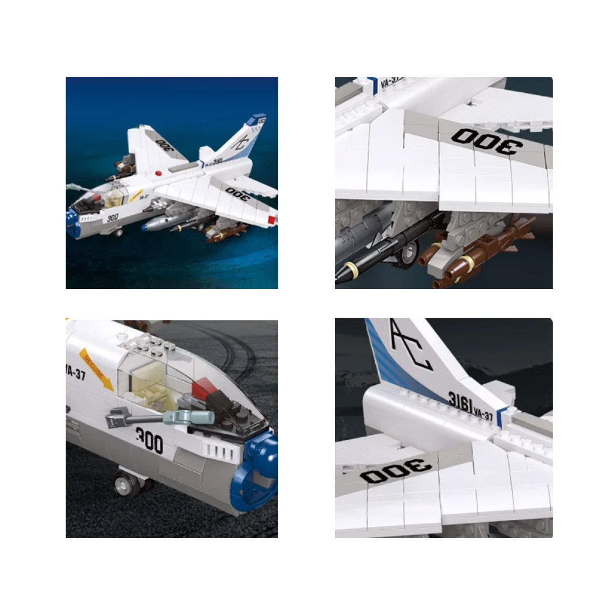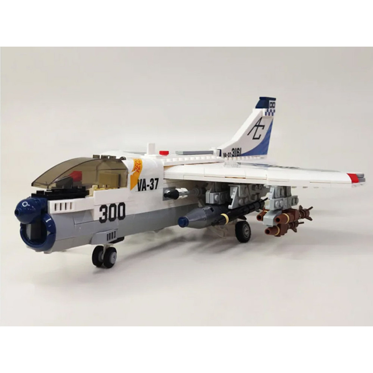 Ehitusklotside komplekt rünnaklennuk on ideaalne pakkumine kõigile nende õhumasinate fännidele. See 683-osaline komplekt võimaldab ehitada LTV A-7 Corsair II, Ameerika subsoonilist rünnaklennukit. Klotsid on suurepäraselt tehtud valge-halli värvikombinatsiooniga, mis kindlasti pakub palju rõõmu iga sõjanduse, lennunduse ja nende masinate ajaloo fännile. Komplekt pakub mitte ainult palju lõbu ja rõõmu, vaid ka arengut. Klotside ehitamine mõjutab positiivselt lapse käe-silma koordinatsiooni. Valmis mudel võib saada laste toa kaunistuseks või ainulaadseks mudeliks kogus!