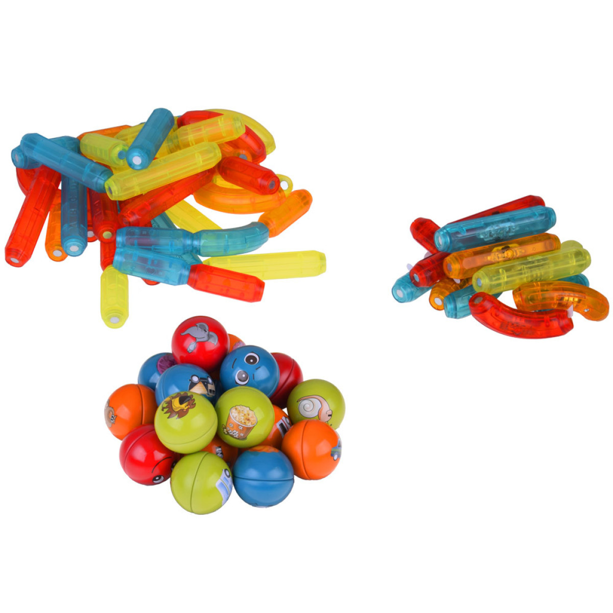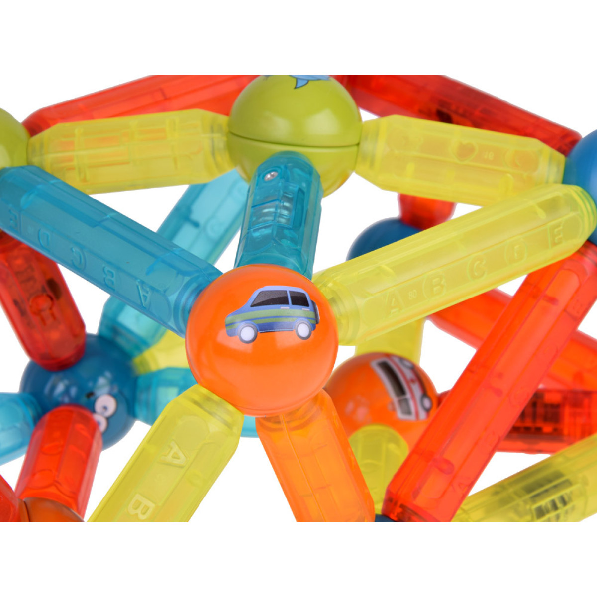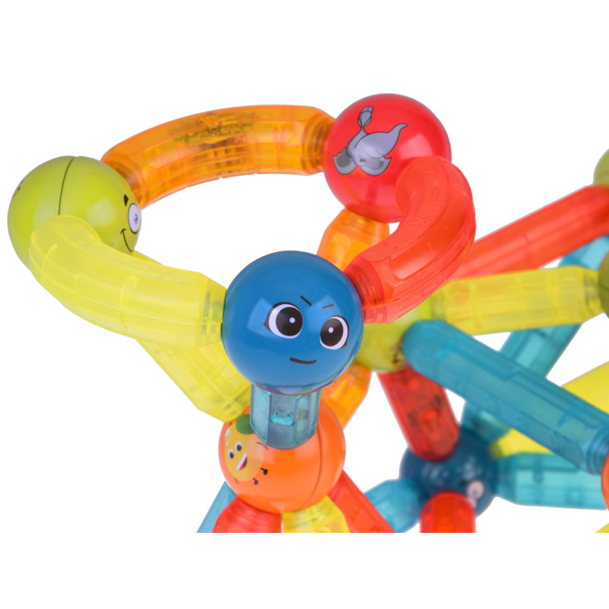 Komplekt on valmistatud esteetilisest, värvilisest plastikust ning pakub ideaalset lõbu väikestele ehitajatele! Ehita unikaalseid ehitisi ja vaata, kuidas värvilised klotsid valgust mängivad, pakkudes tundideks loomingulist meelelahutust. Klotsid on väga kergesti kokkupandavad, sisseehitatud magnetid teevad need ideaalseks väikestele kätele.