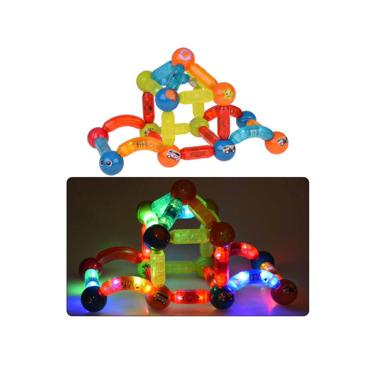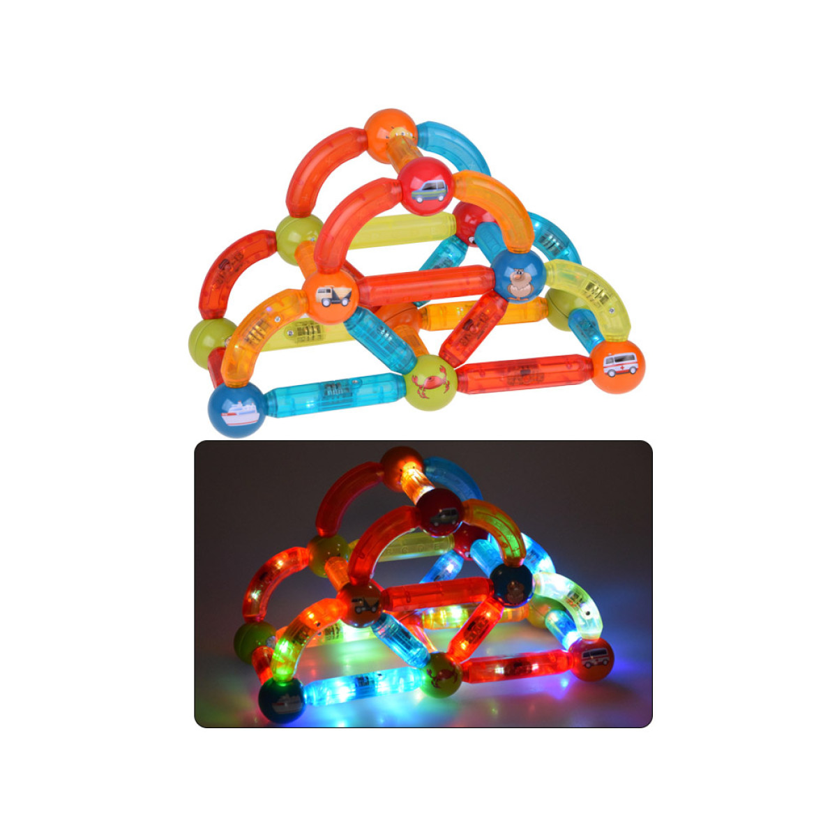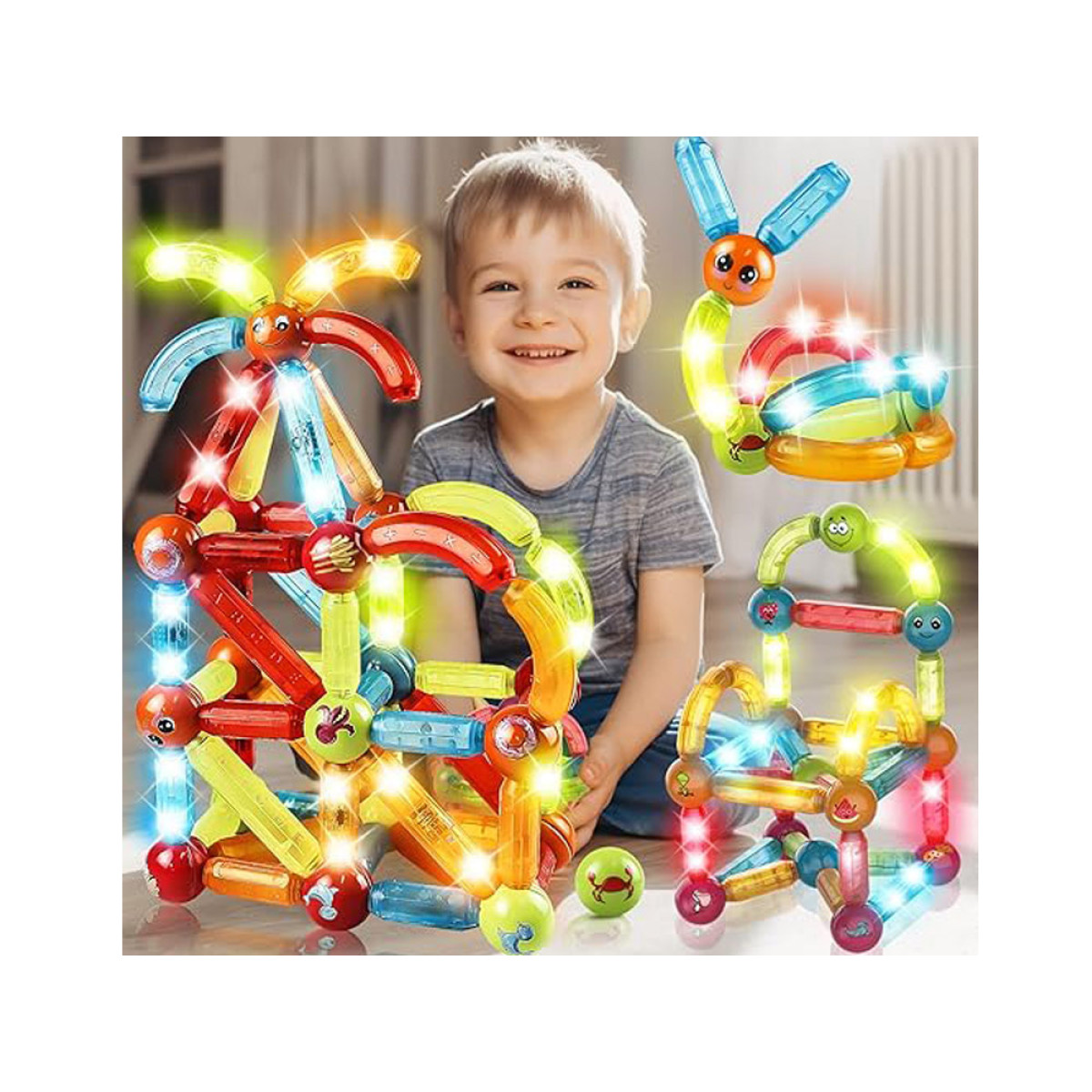 Need mänguklotsid on ideaalne valik igale lapsele, kes naudib ruumiliste ehitiste loomist. Otsid oma lapsele loovat viisi vaba aja veetmiseks? Meil on lahendus! Värvilised magnetmänguklotsid äratavad lapse kujutlusvõime, õpetavad loogilist mõtlemist ja arendavad ehitusoskusi. Komplekt koosneb 76 elemendist, mis võimaldavad luua palju huvitavaid lamedaid ja ruumilisi figuure. Mõnede elementide valgustusefekt kindlasti vaimustab iga väikest ehitajat.