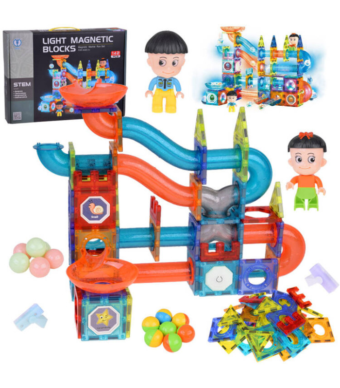Säravad magnetklotsid 142-osaline komplekt kuuliraja ehitamiseks sobib igale väikesele ehitajale.