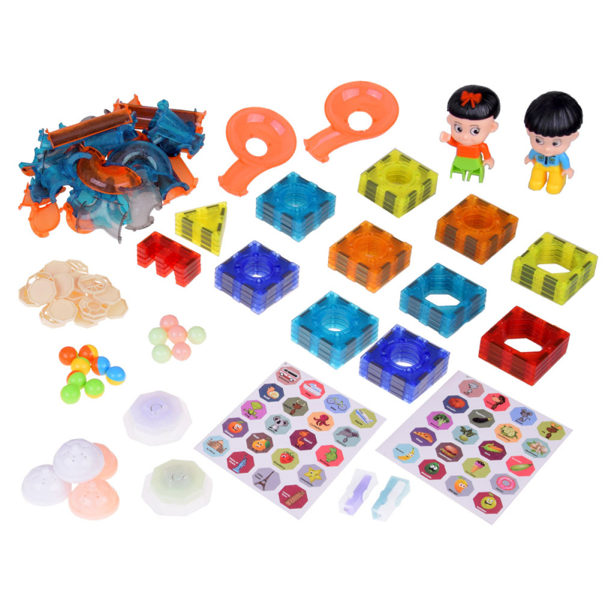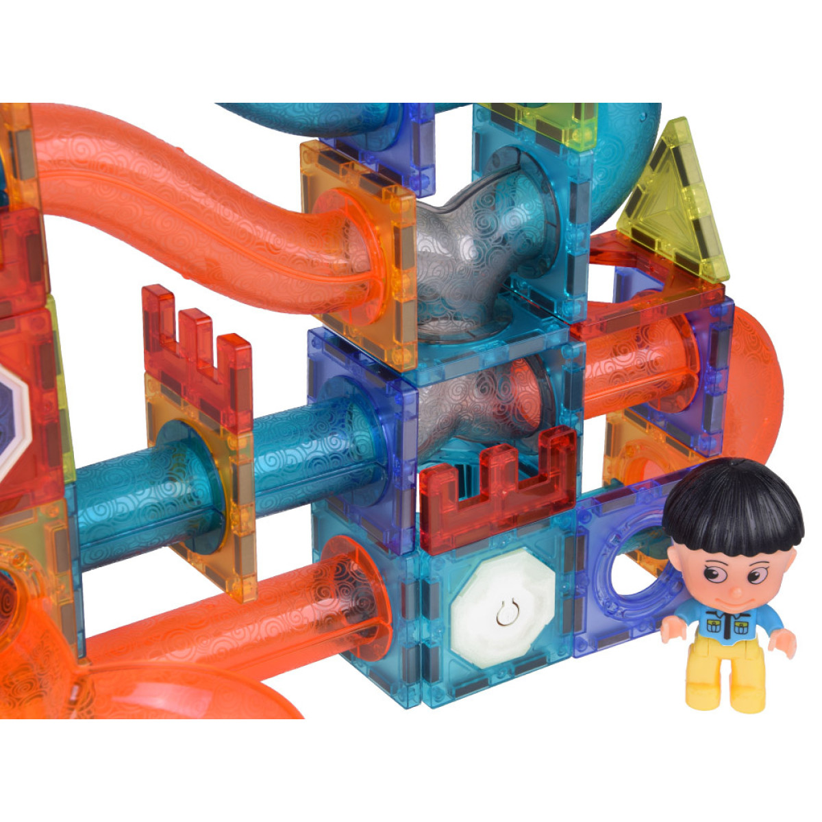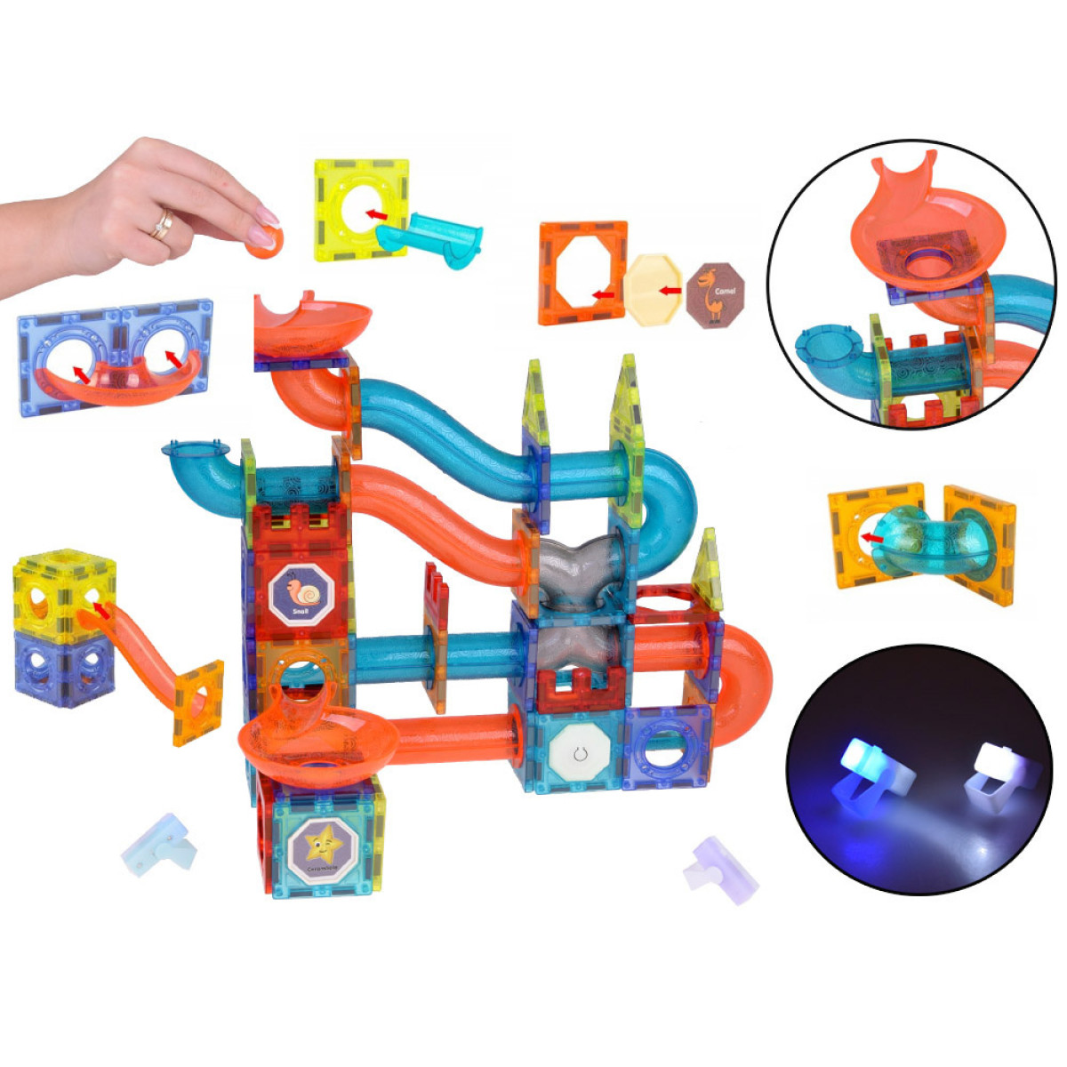 Komplekt koosneb 142 värvilisest magnetilisest klotsist, mis pakuvad lõputuid võimalusi fantaasiarikkaks loomiseks ja arendavad lapse loovust. Mõned komplekti osad on varustatud värviliste valgusdioodidega, mis annavad klotsidele muljetavaldava valgusefekti!