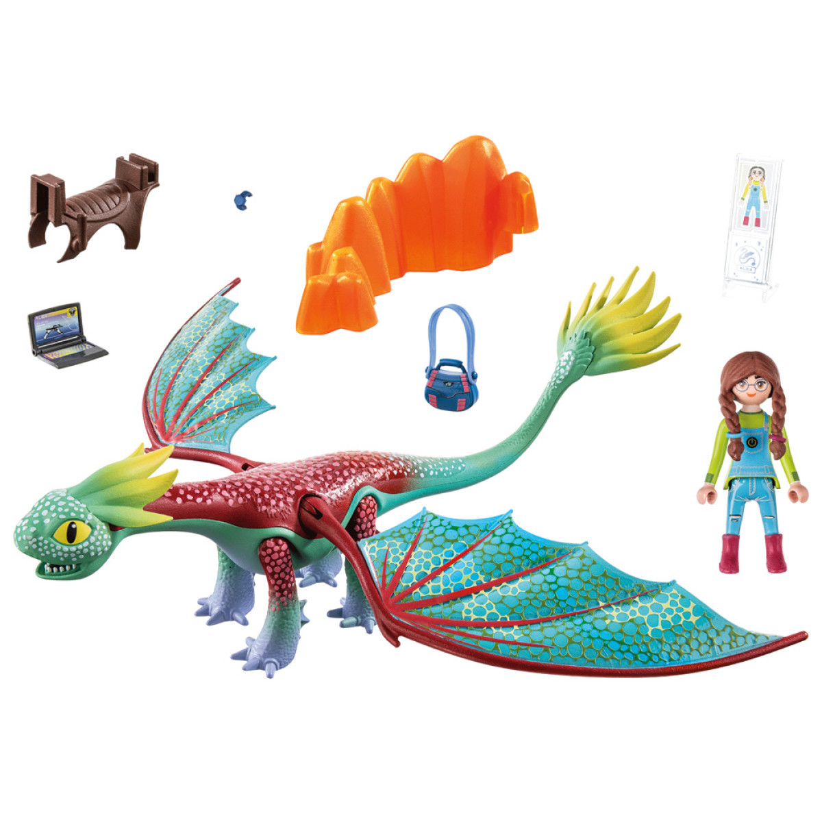 Playmobil 71083 Dragons The Nine Realms on fantastiline komplekt, mis sisaldab 14 elementi, viies lapsed maagilisse draakonite ja seikluste maailma. Komplektis on mitmesugused figuurid, aksessuaarid ja elemendid, mis võimaldavad luua oma lugusid ja stseene lemmikdraakonite maailmast. See on ideaalne mänguasi väikestele fantaasia, seikluste ja loova mängu armastajatele. Komplekt võimaldab lastel mängida põnevaid võitlusi, avastada saladusi ja arendada kujutlusvõimet. Mänguasi on suurepärane valik kingituseks, julgustades ühist, loovat mängu tundideks!