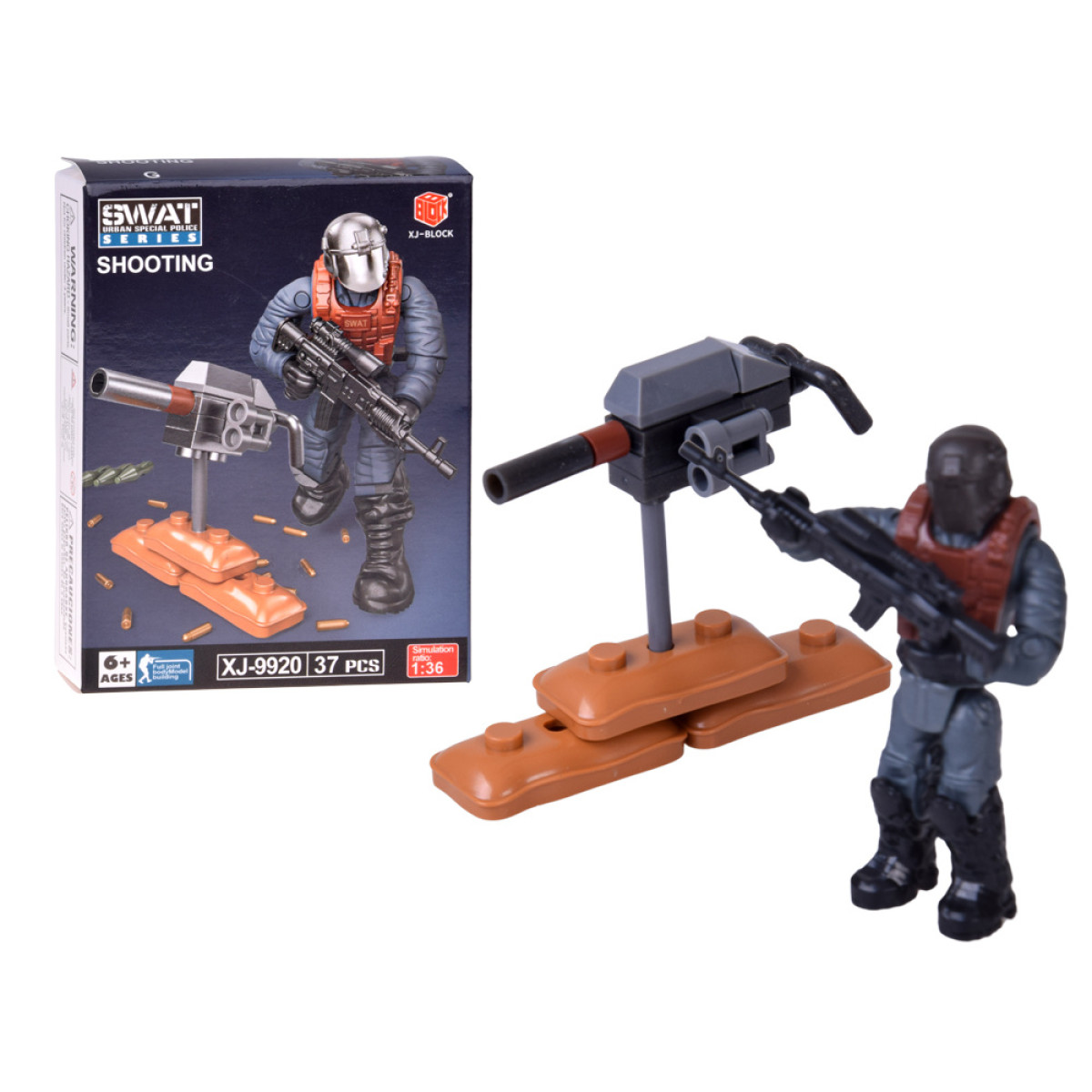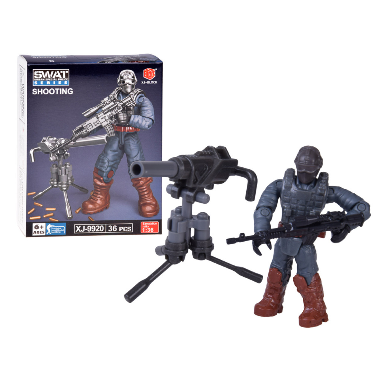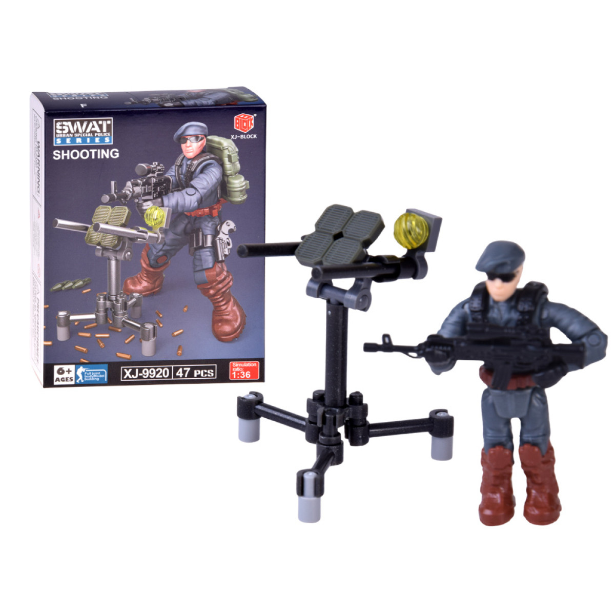 SWAT eliitüksuse politseiniku kokkupaneku komplekt on mõeldud kõigile klotside fännidele. Valmis kuju sobib hästi politsei- ja vargamängudeks või politseisõidukite kogude täiendamiseks.