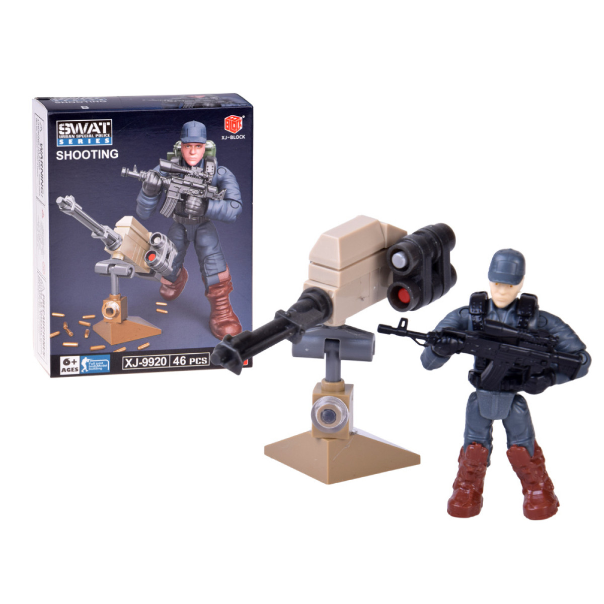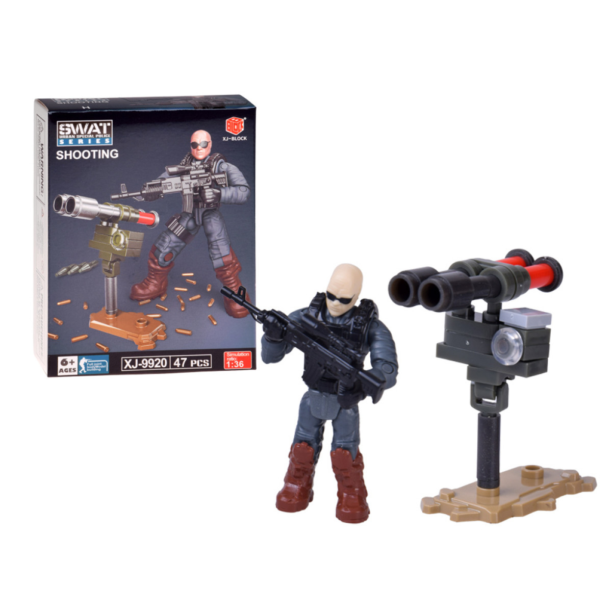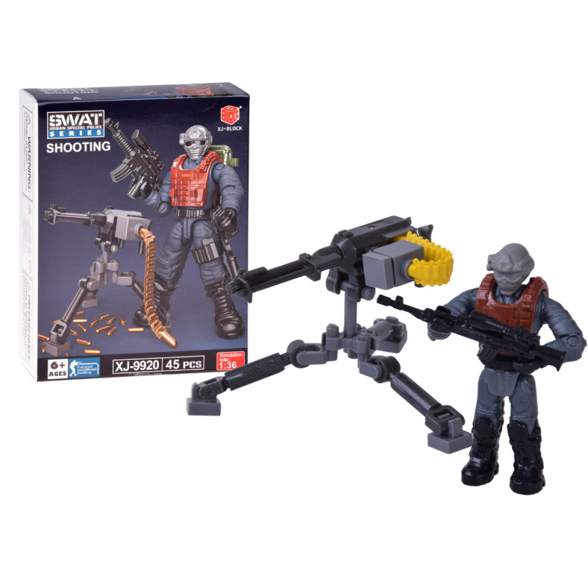 SWAT eliitüksuse politseiniku kokkupaneku komplekt on mõeldud kõigile klotside fännidele. Valmis kuju sobib hästi politsei- ja vargamängudeks või politseisõidukite kogude täiendamiseks.