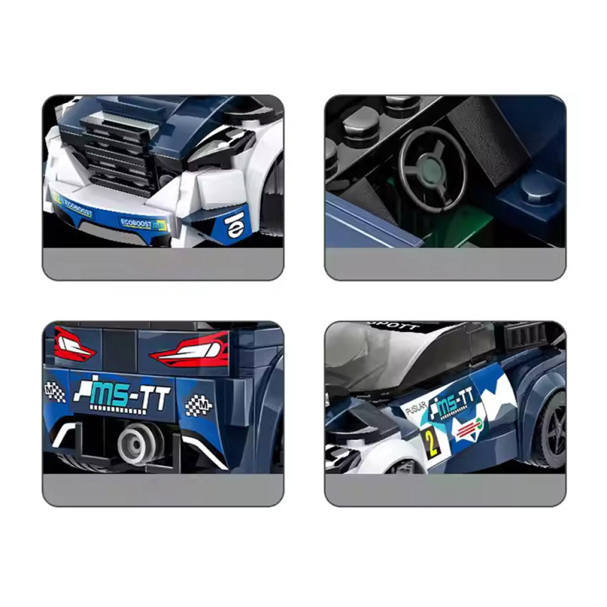 Komplekt sisaldab 164 hoolikalt valmistatud elementi, mis on kergesti ühendatavad stabiilse konstruktsiooni loomiseks. Lisaks on kaasas kleebised, millega noor ehitaja saab autole anda isikupärase, sportliku ilme.