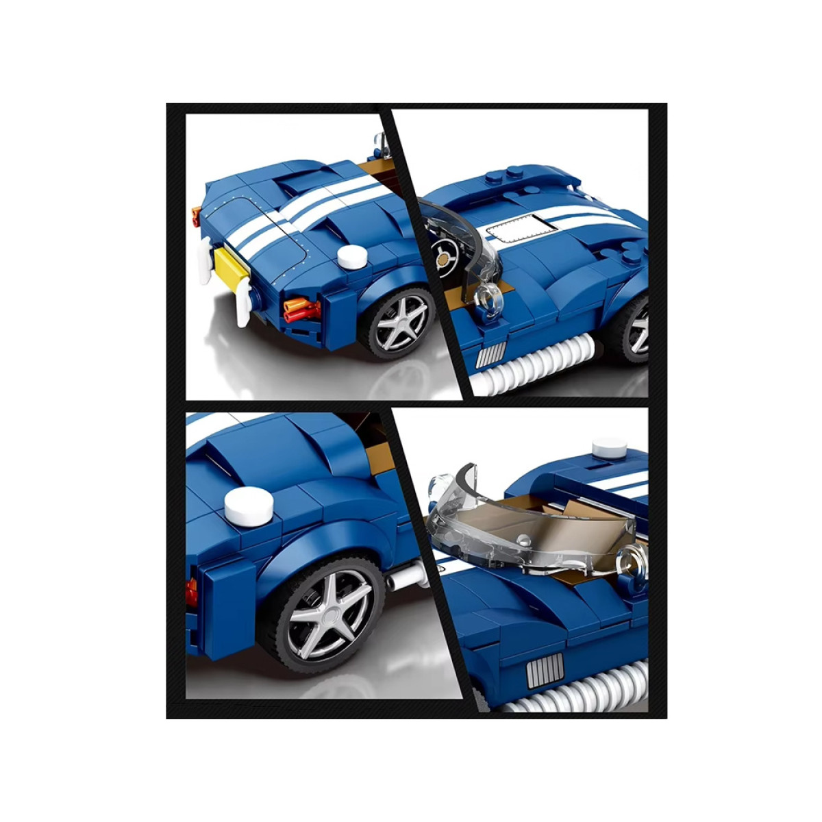 Sinine sportauto tehniliste klotside komplekt on mõeldud klassikalise autospordi, dünaamilise stiili ja täpse konstruktsiooni austajatele. Mudel on inspireeritud ikoonilise roadsteri väljanägemisest – madal ja sale siluett, iseloomulik pikk kere ümardatud esiosaga, avatud kabiin ja elegantselt kujundatud rattakoopad annavad sellele erilise klassikalise iseloomu.
