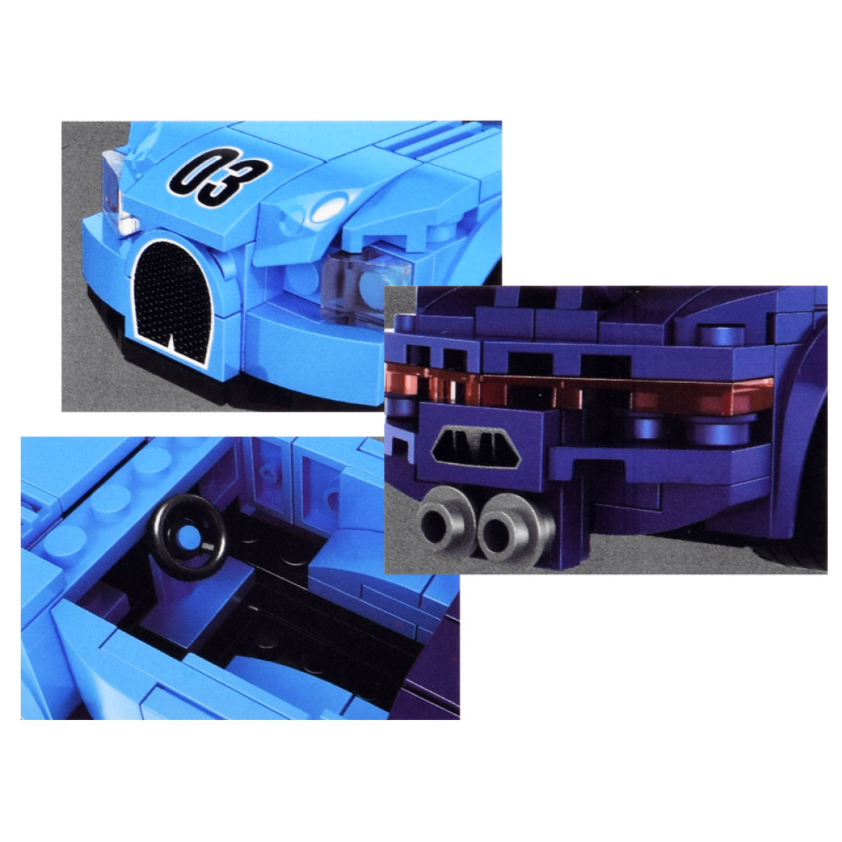 Tehnilised plastklotsid võimaldavad ehitada unistuste sportauto. Klotsid on lihtsasti ühendatavad, ohutud ja vastupidavad. Komplekti kuuluvad autokleebised täiustavad lõppmuljet.
