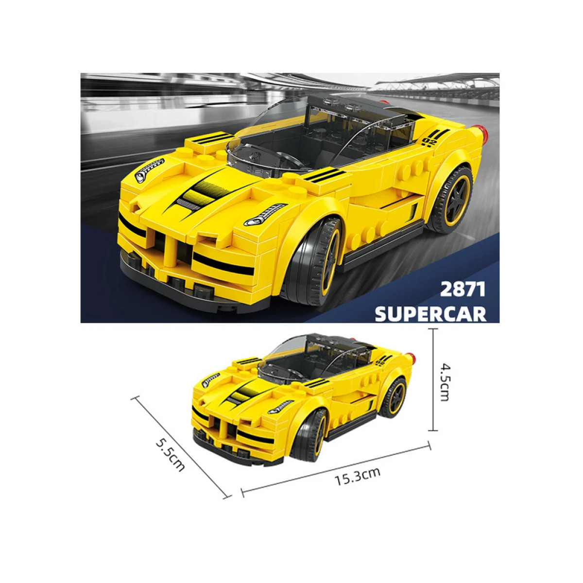 Koge kiirautode ja mehaanika maailma selle sportliku stiiliga tehniliste klotside komplekti abil. Kollase värvusega võidusõiduauto mudel võimaldab lapsel loovalt kokku panna ja kaunistada oma autot.