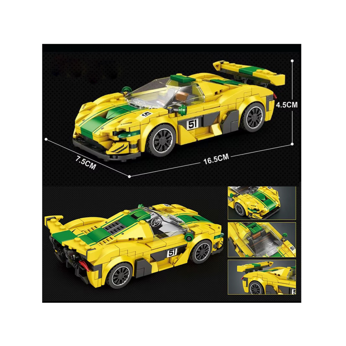 Konstruktorikomplekt Spordiauto P1 GTR Kollane-Roheline 368-osaline